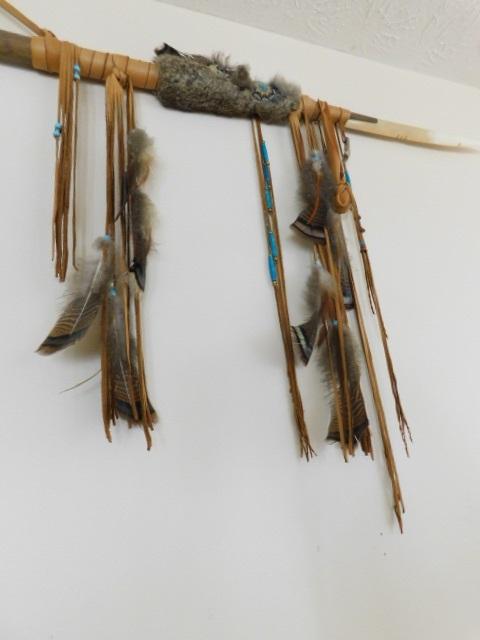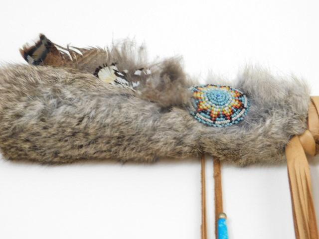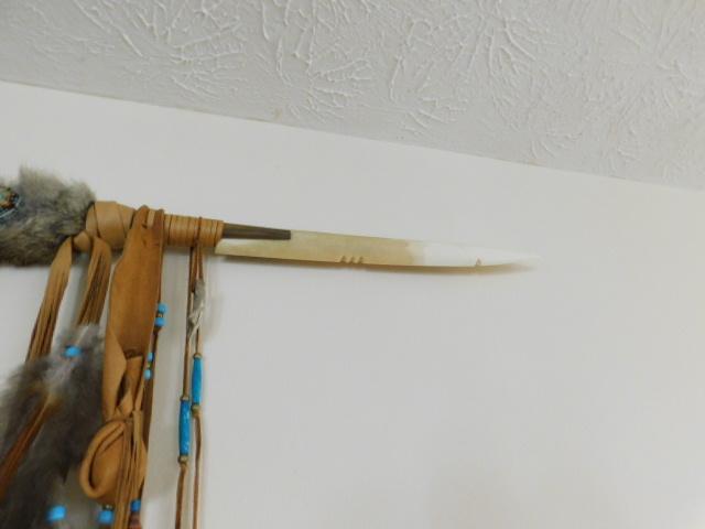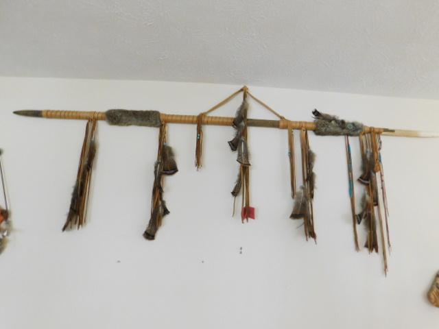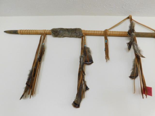 ative American Spear with Feather and Leather Accents Reproduction by Billy White Wolf Ford 70"