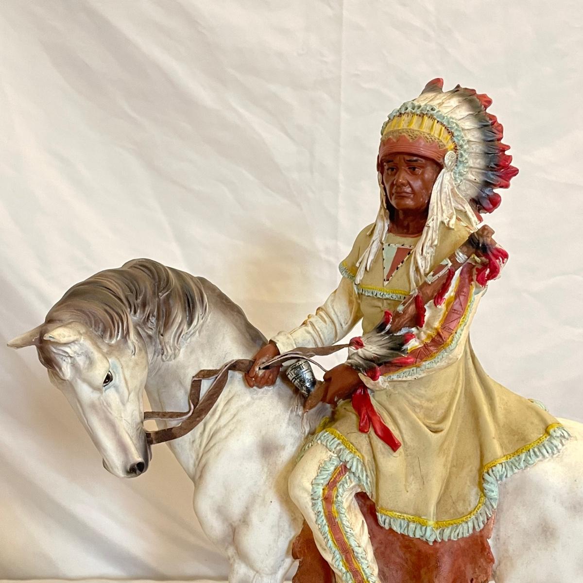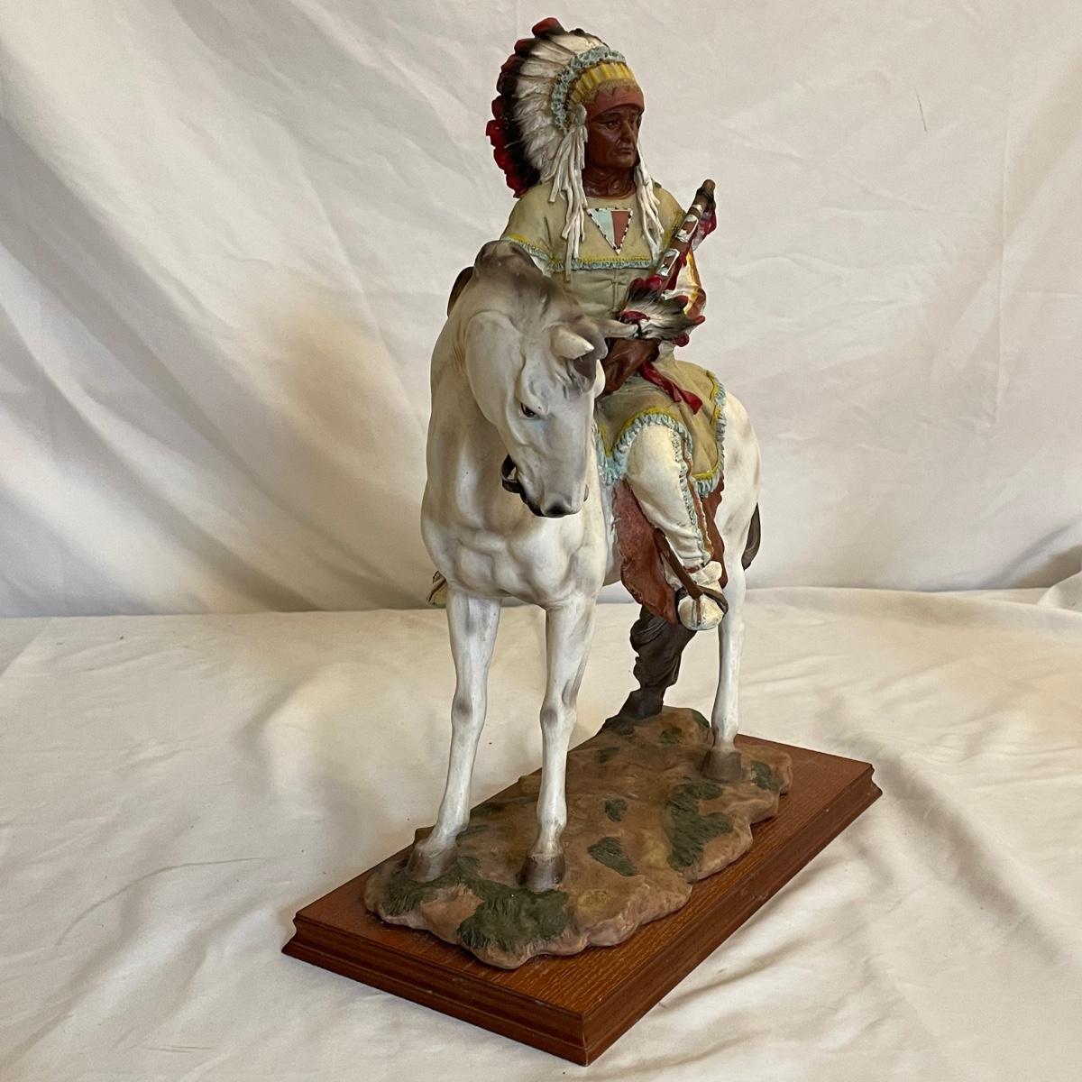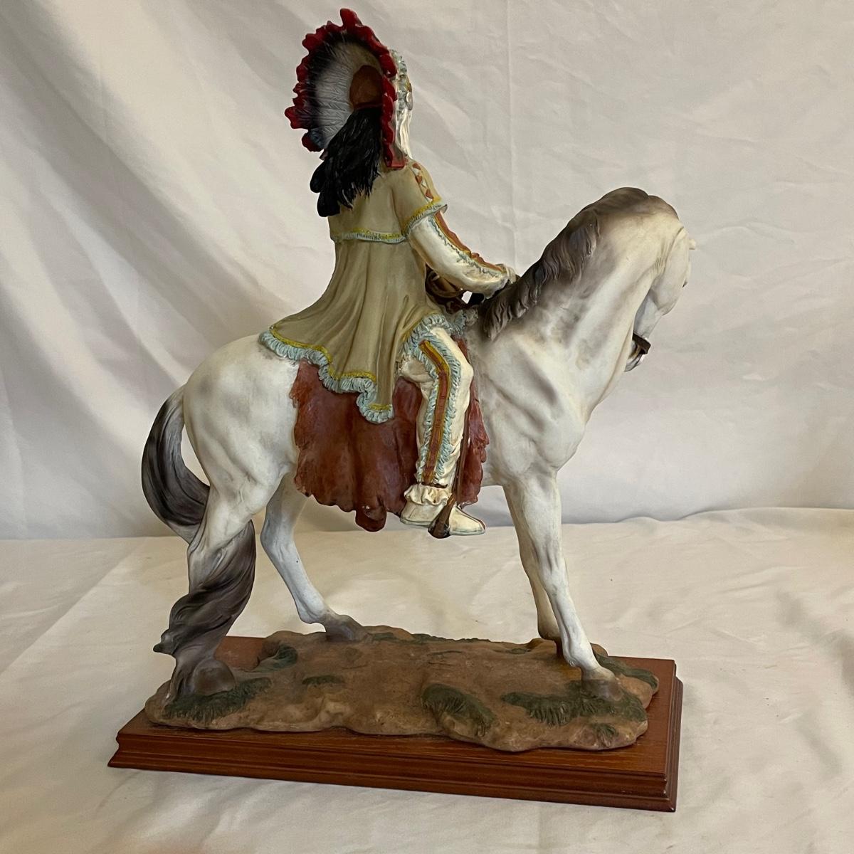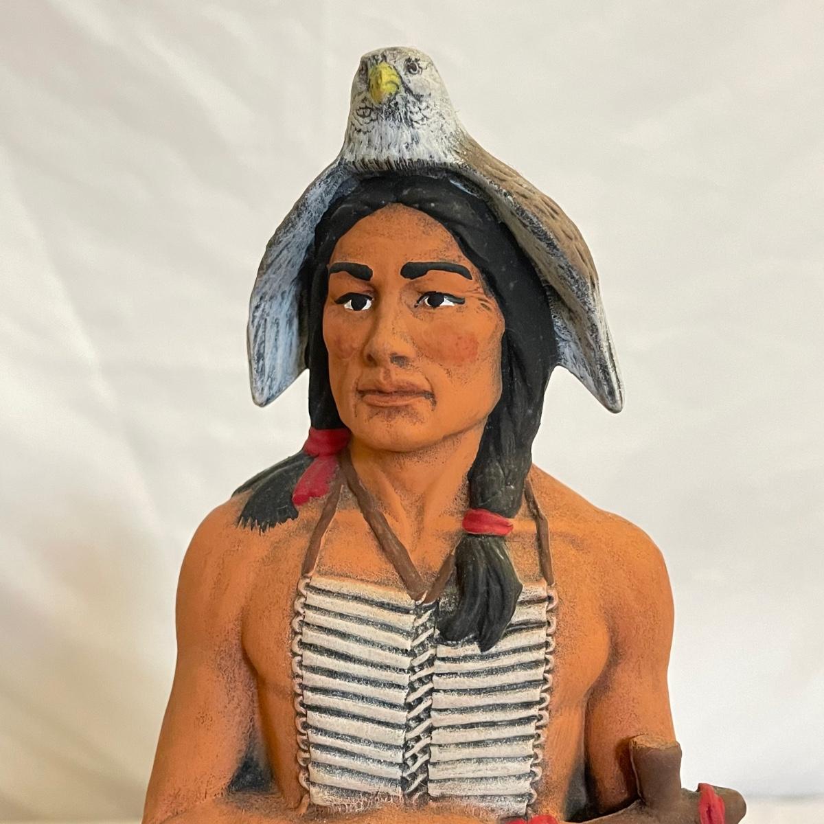 This duo includes an impressive ceramic stein that stands 13.5” tall and a figurine that appears to be made out of a resin type material mounted on a wooden base; it measures 12” x 6” x 17”.