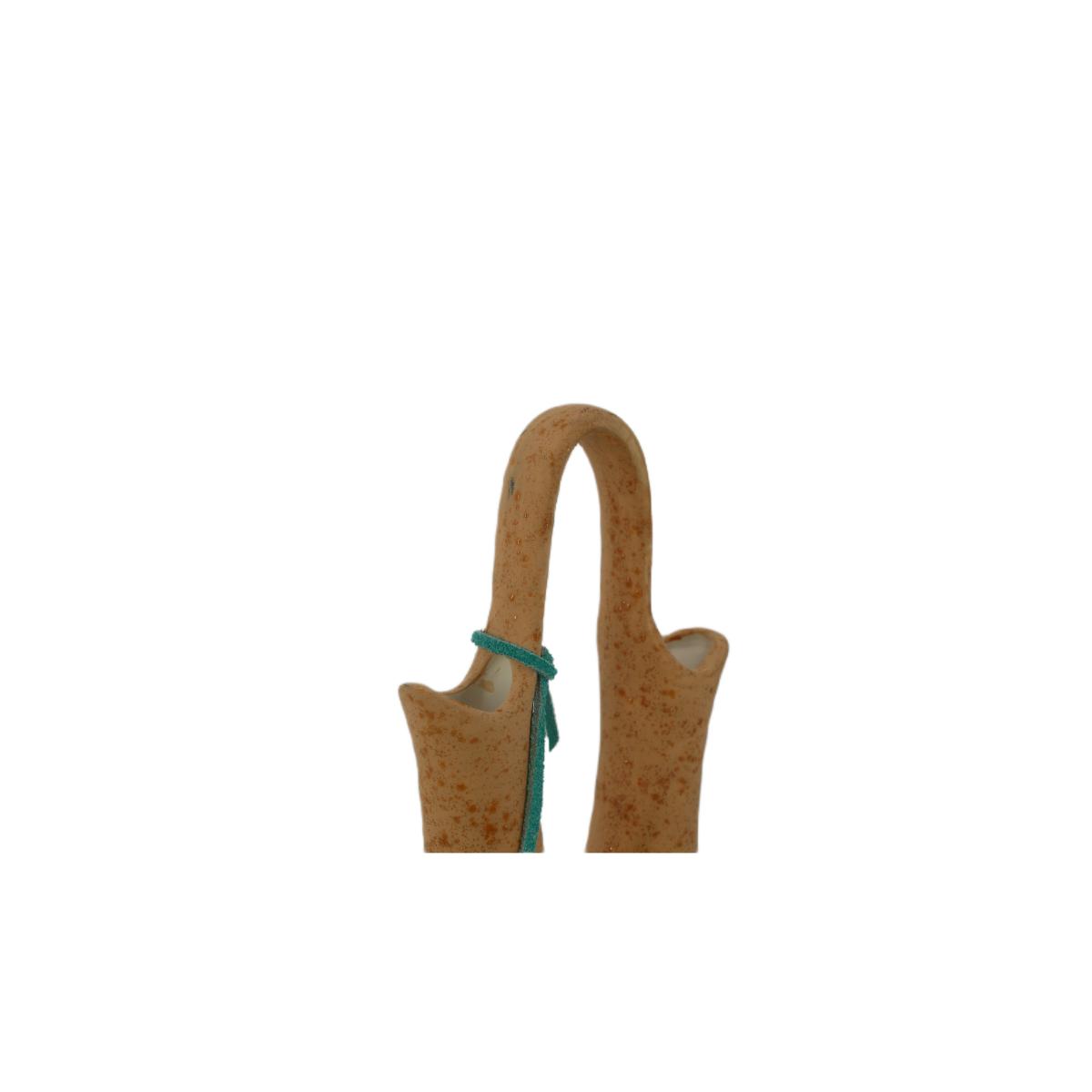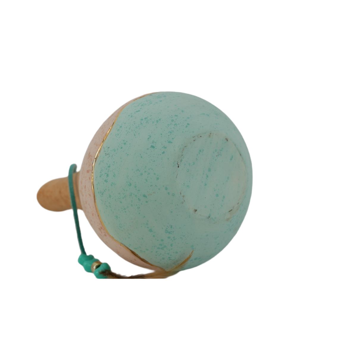 Native American style blue, pink, and brown vase with gold outline. Great condition, some marks on vase. Measures L 5" x H 10.5", weighs 14 oz. (D52)