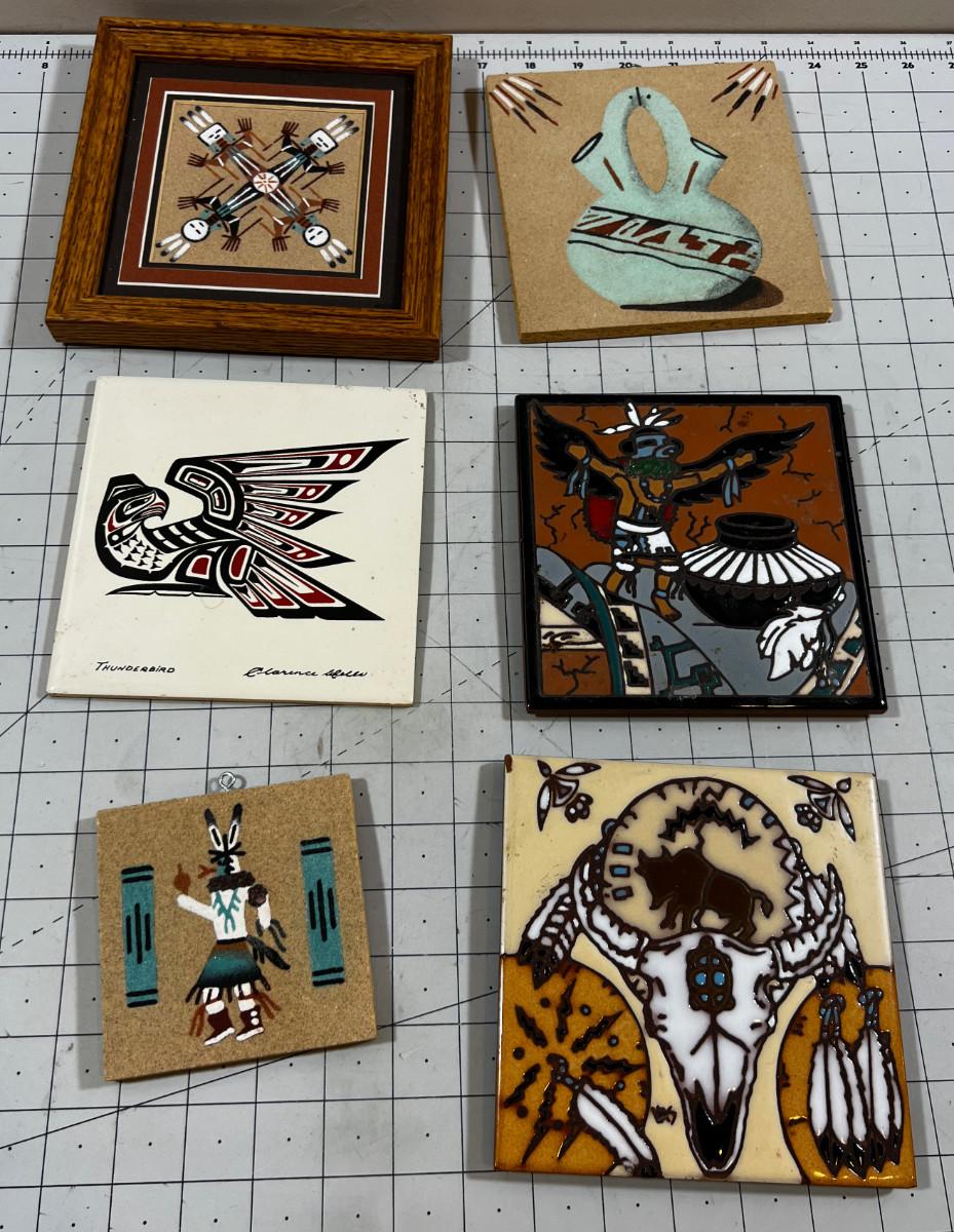 Native American Themed: Trivets, Tiles, Pictures in Sand Paintings