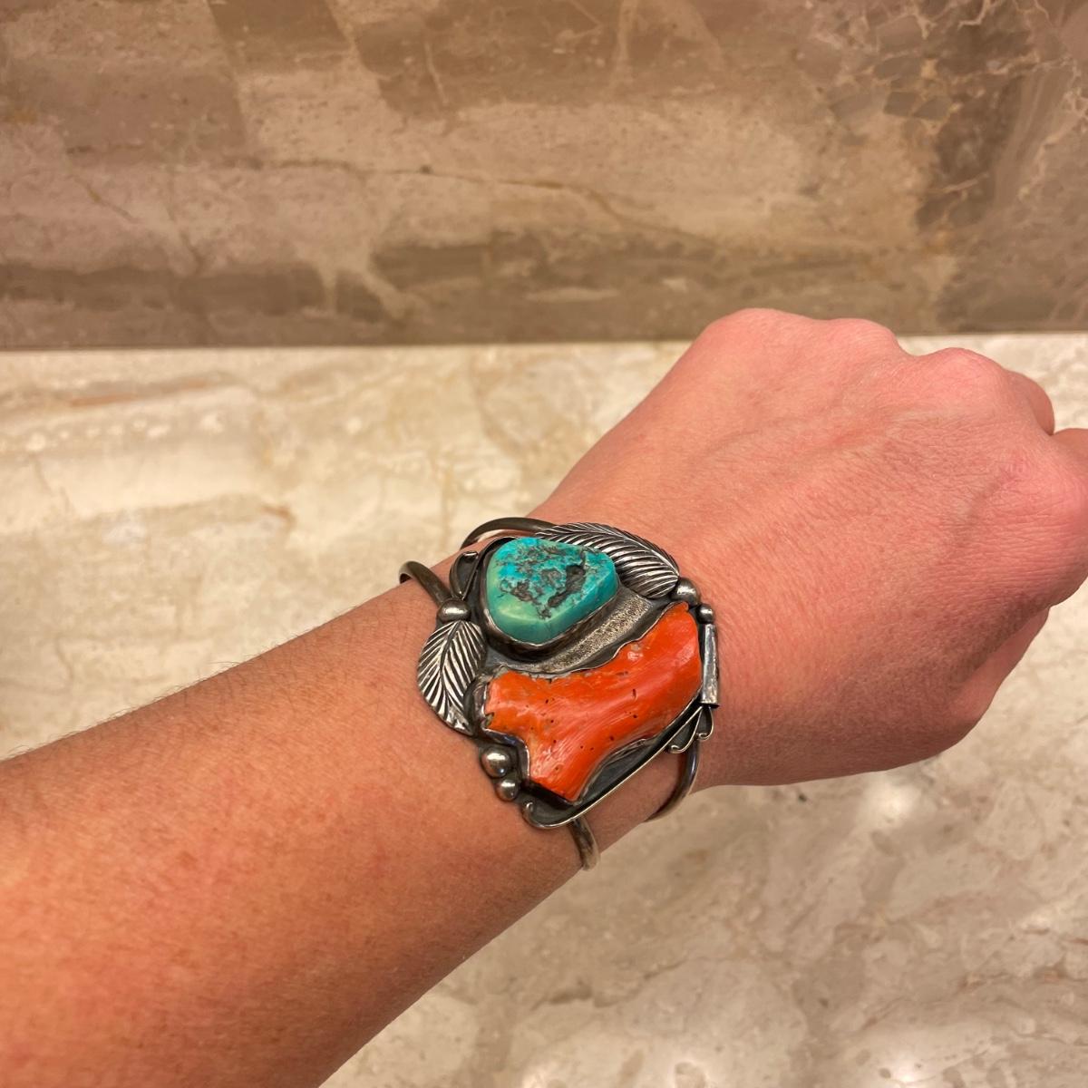 Native American Turquoise and Coral Silver Bracelet & Book (PC2-SS)