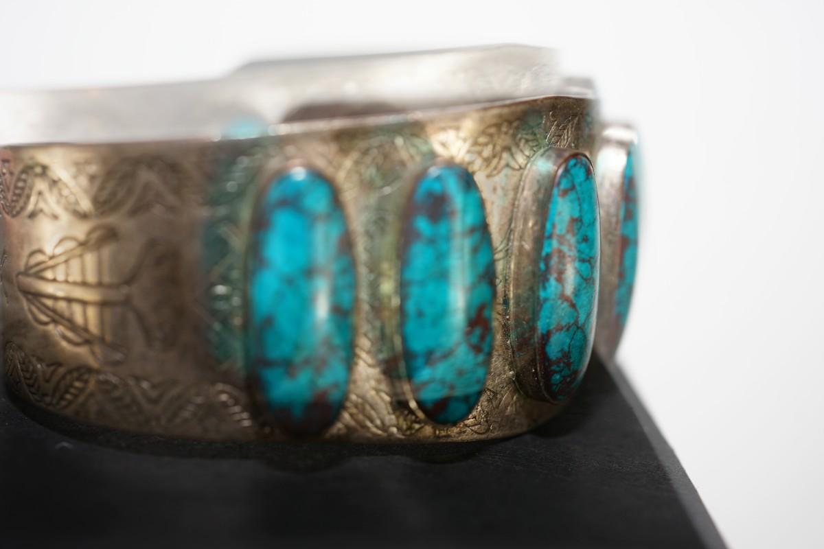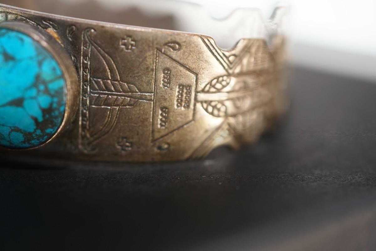 NATIVE AMERICAN TURQUOISE CUFF BRACELETS W/ NICE ENGRAVINGS