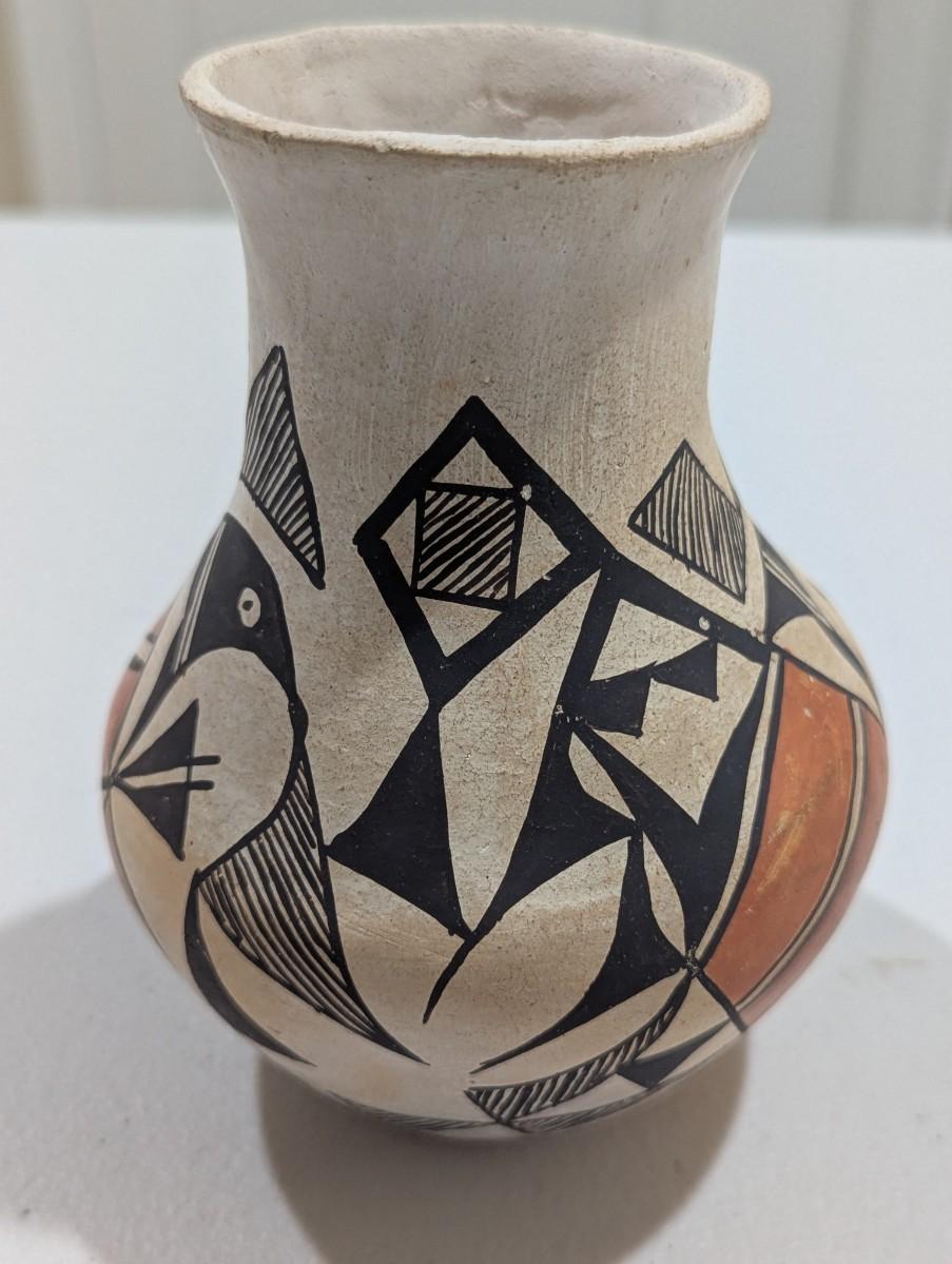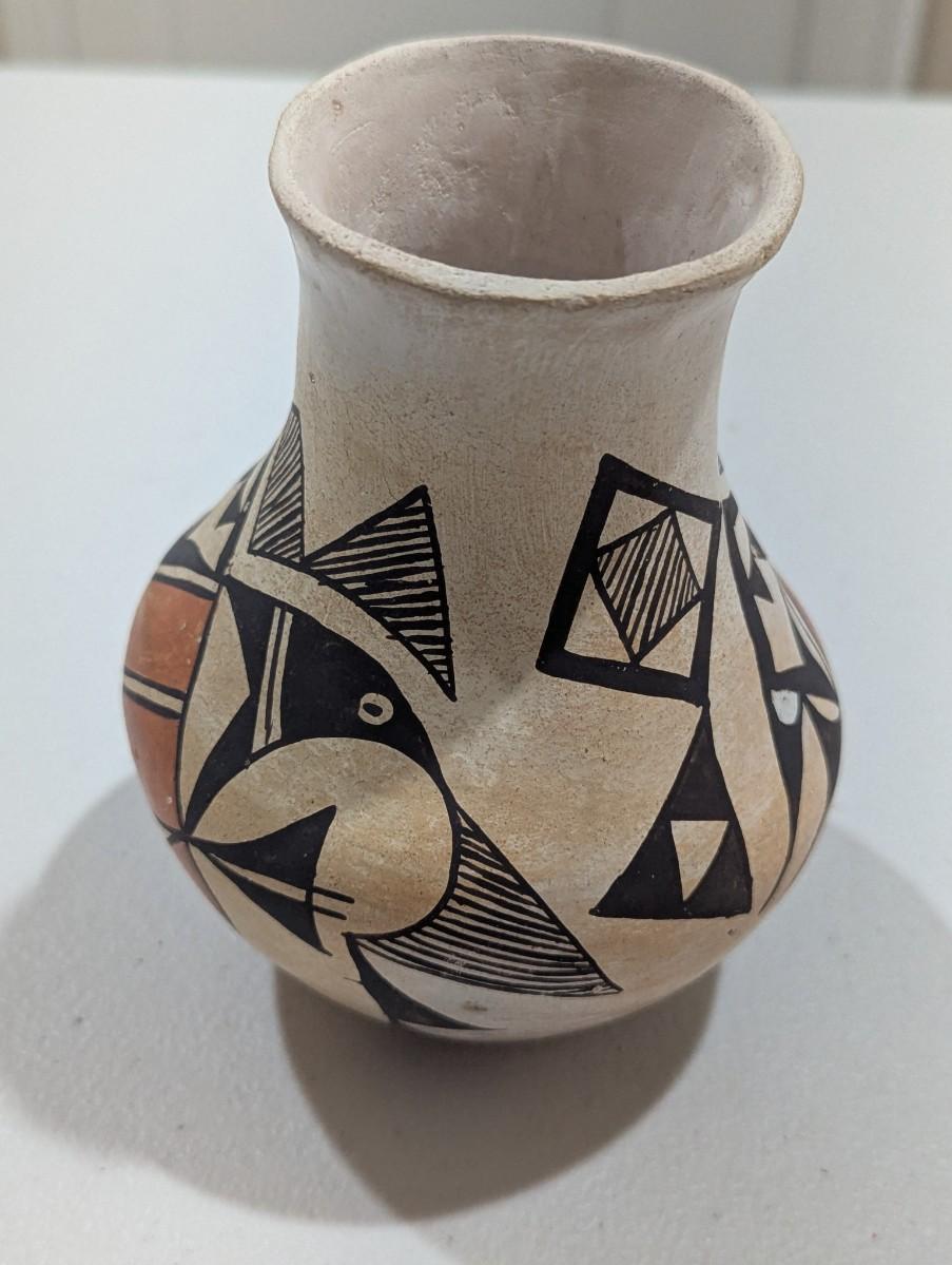 Acoma Vase Red/Black/White Traditional Geometric Signed Flora Ray 5 1/2" (SR)