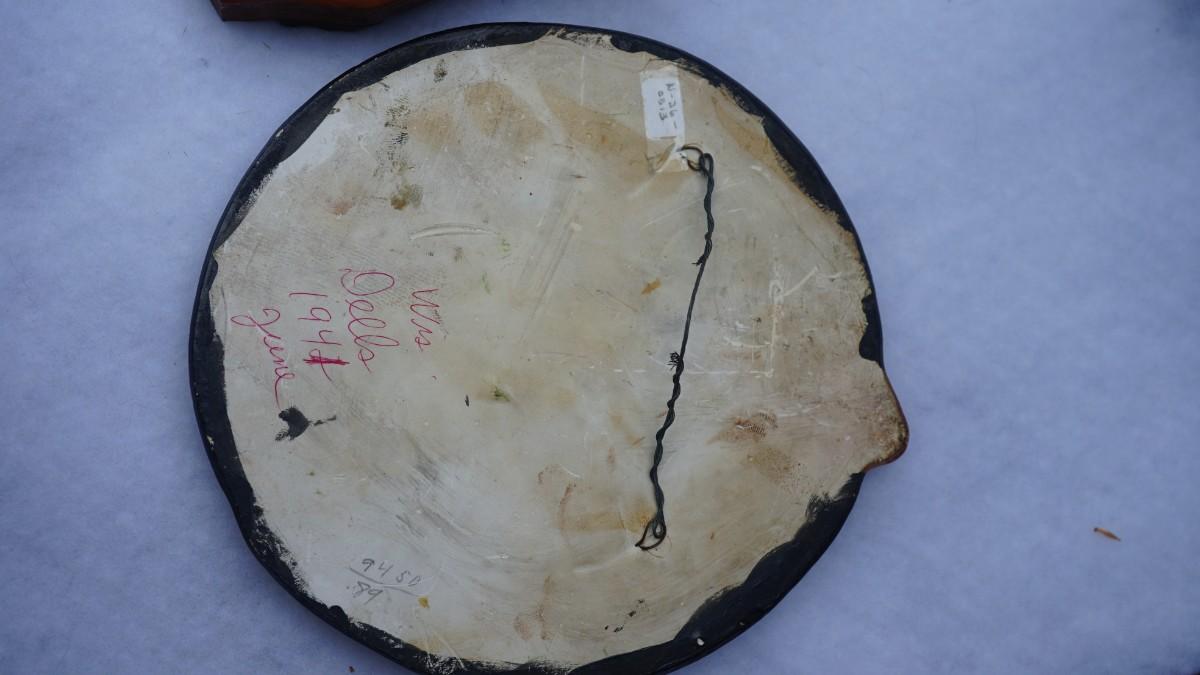 There is a label of Souvenir of Wisconsin Dells on the base of the round plaque