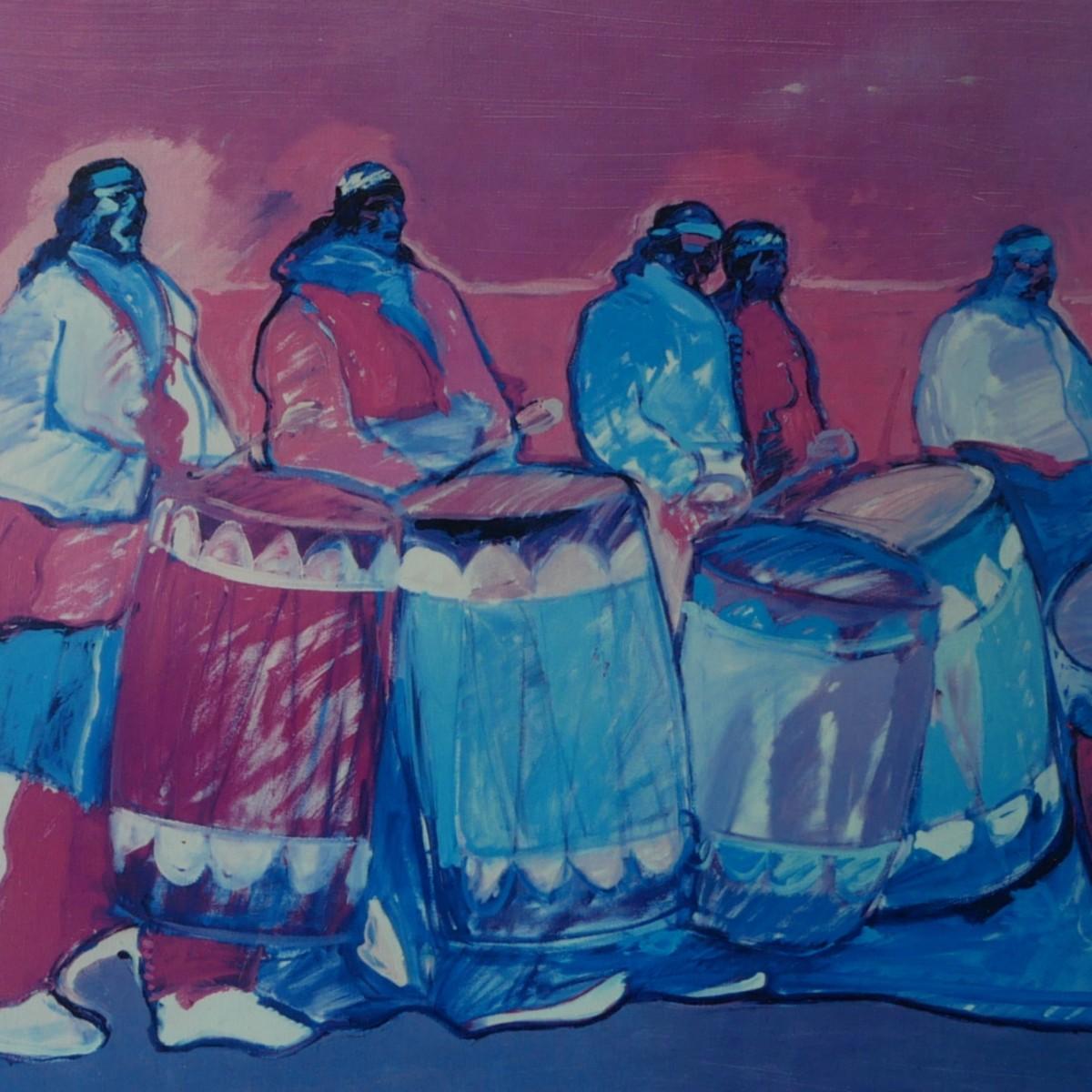 Native Americans with Drums Giclee on Canvas