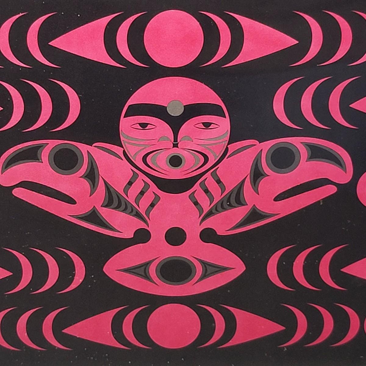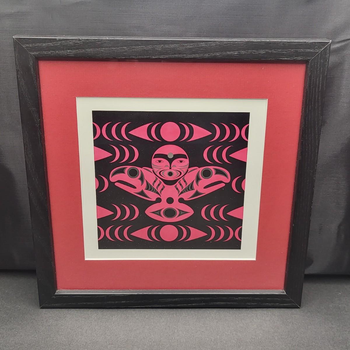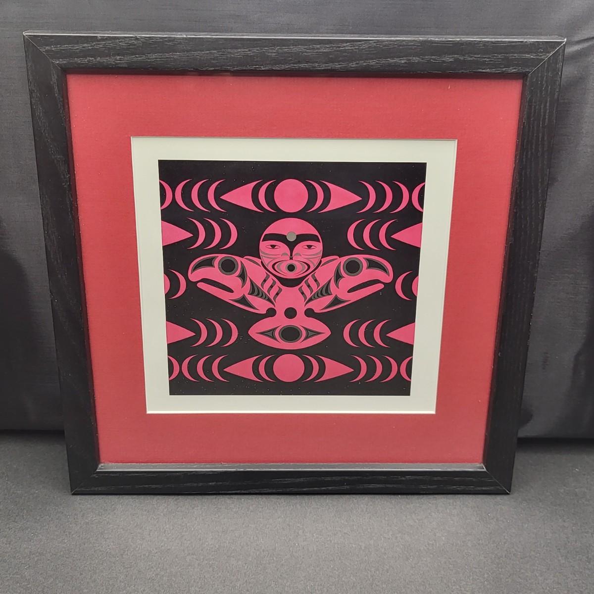 Native American, unsigned, red & black print. Matted and framed. Frame is actually 11" x 11"