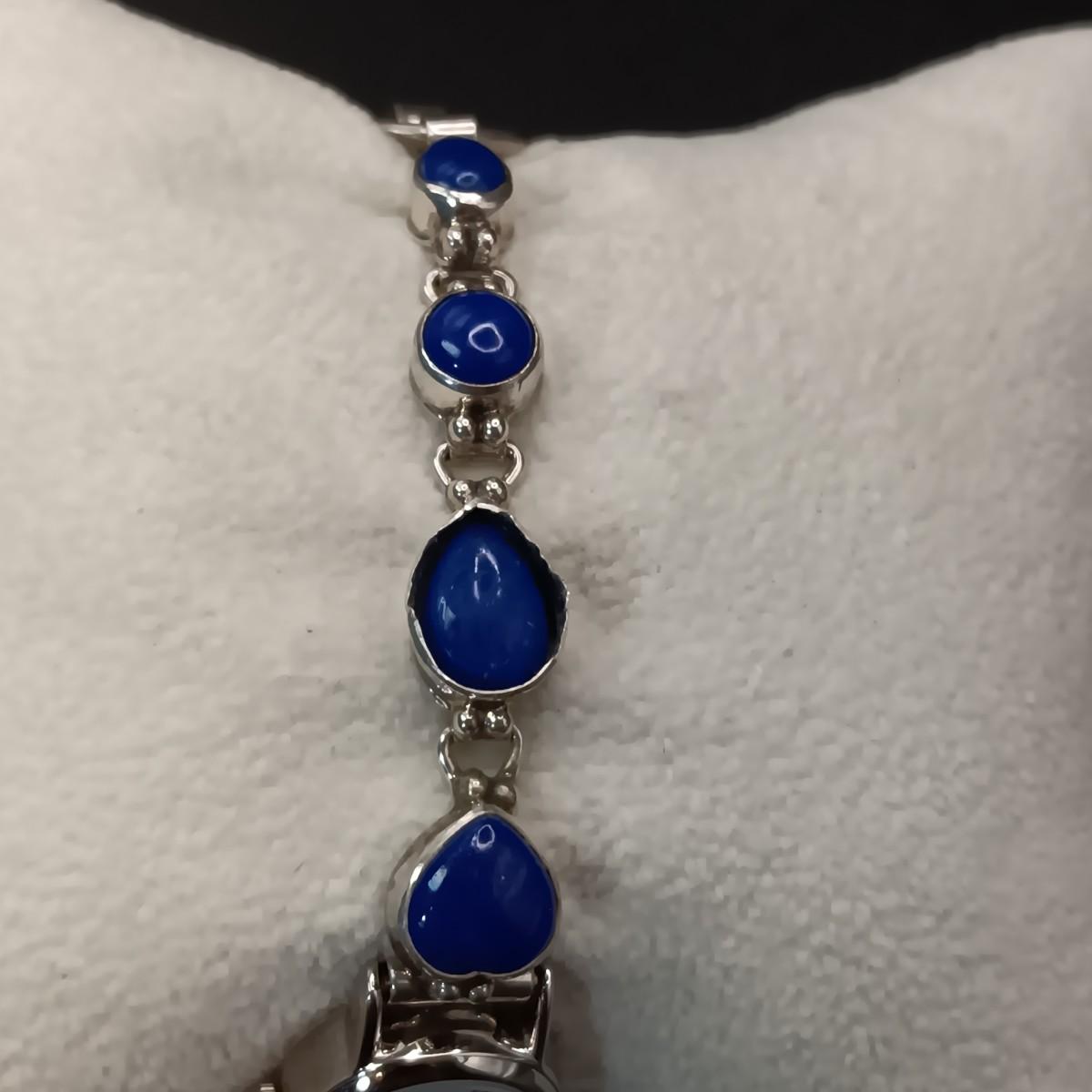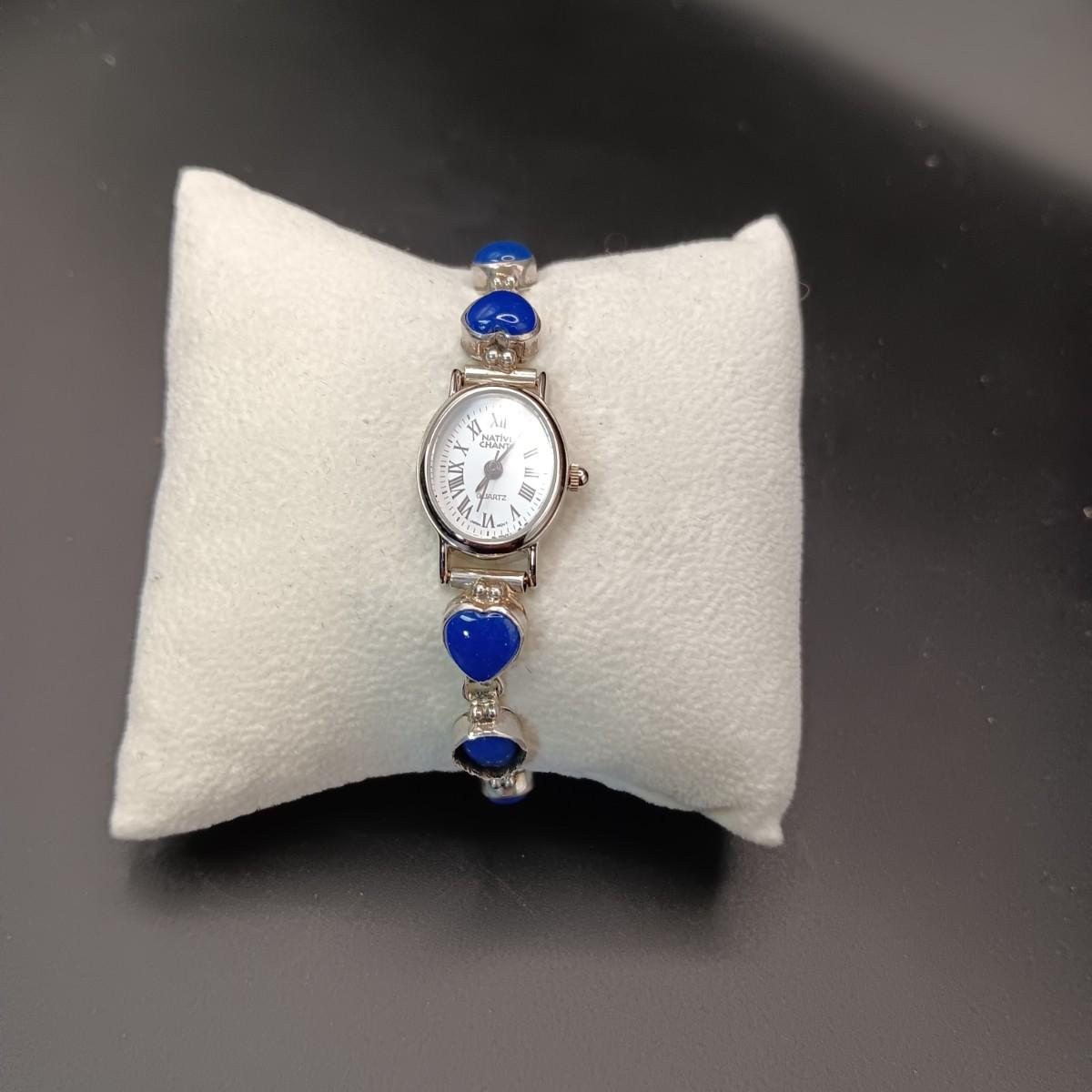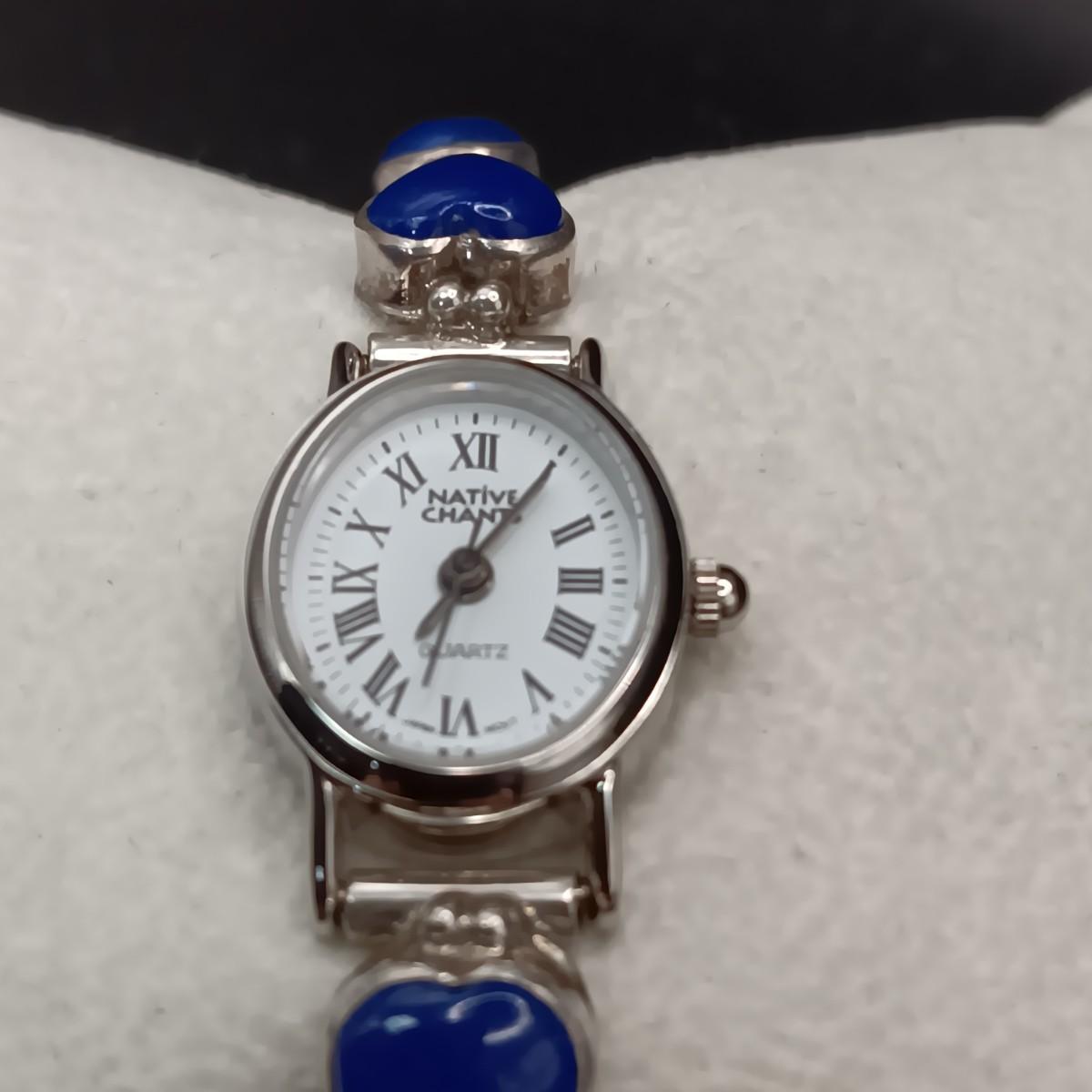 NATIVE CHANTS LADIES WATCH WITH A STERLING AND BLUE STONE BAND