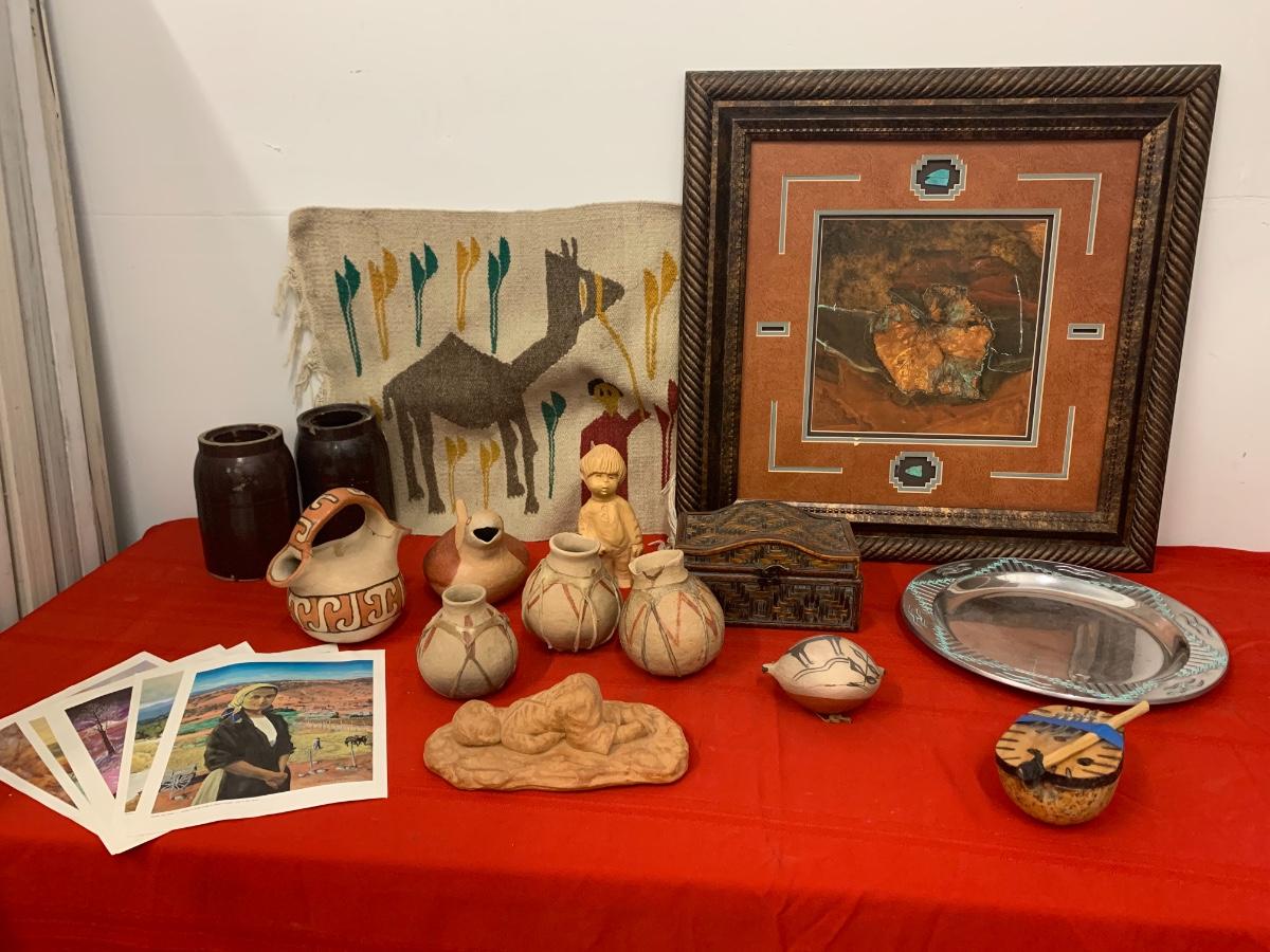Native pots, rug, art, platter, figurines, and more!