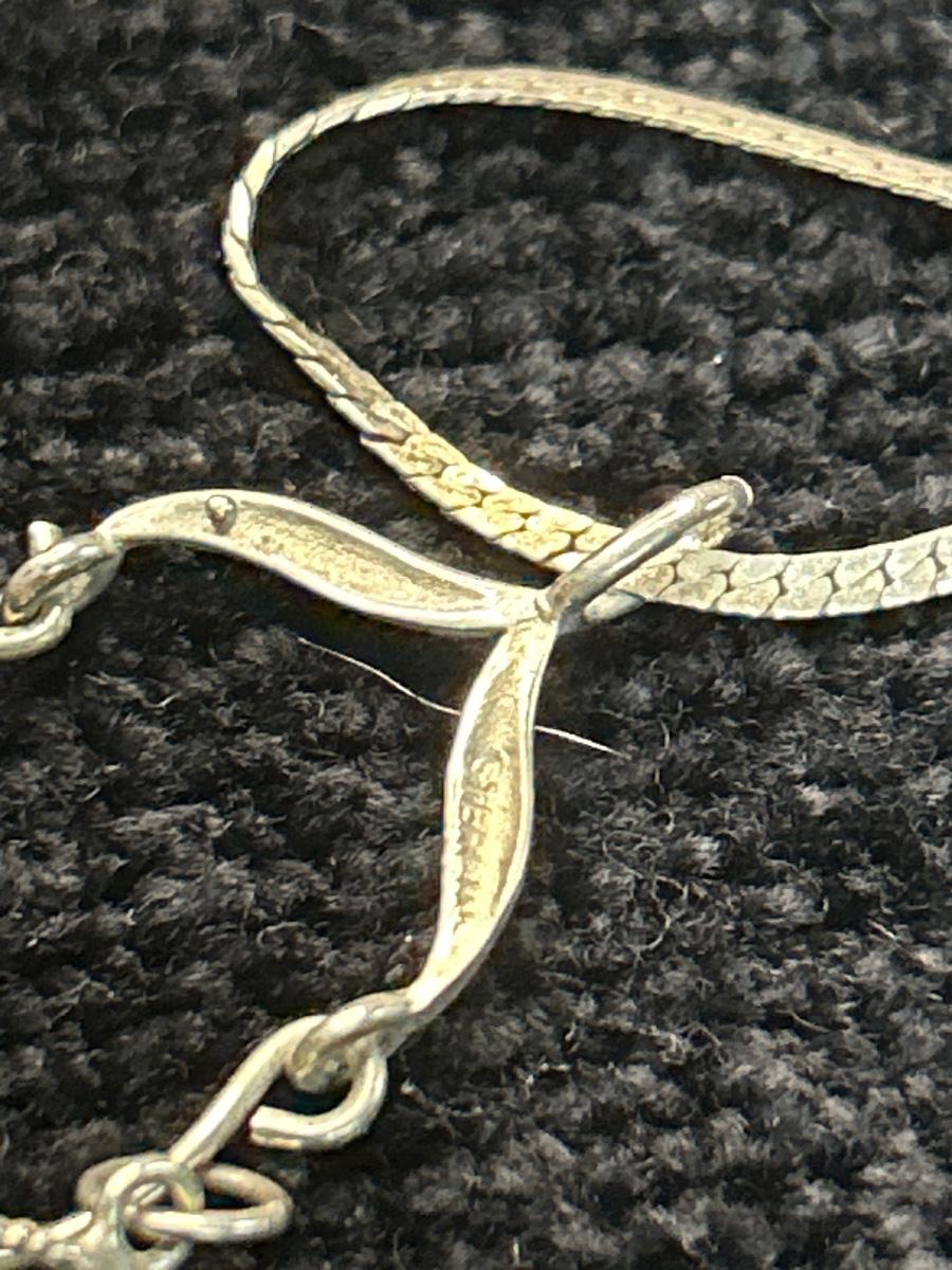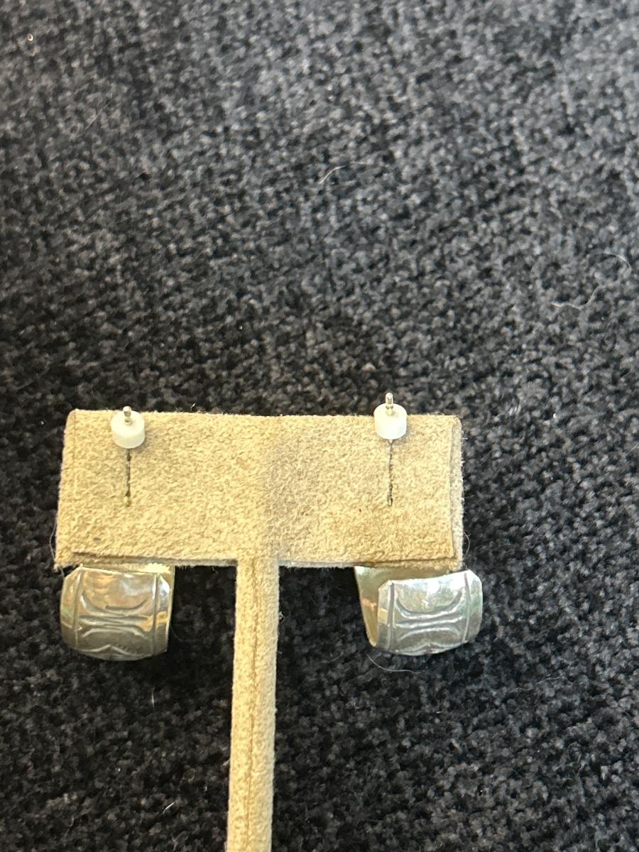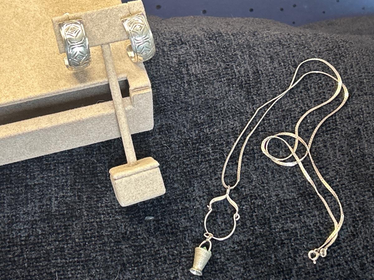The necklace is sterling & very old. The earrings are Native sterling pierced.