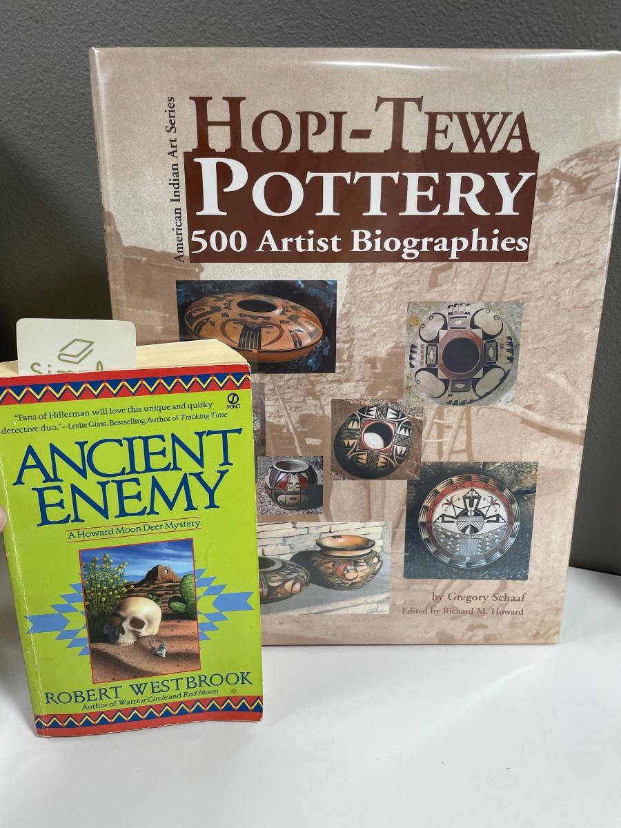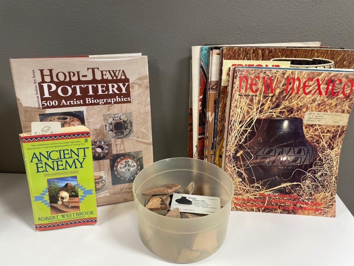 Native pottery pieces & books/magazines