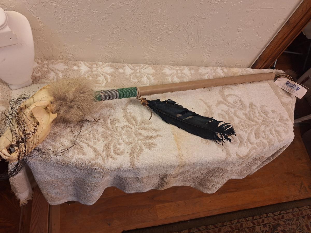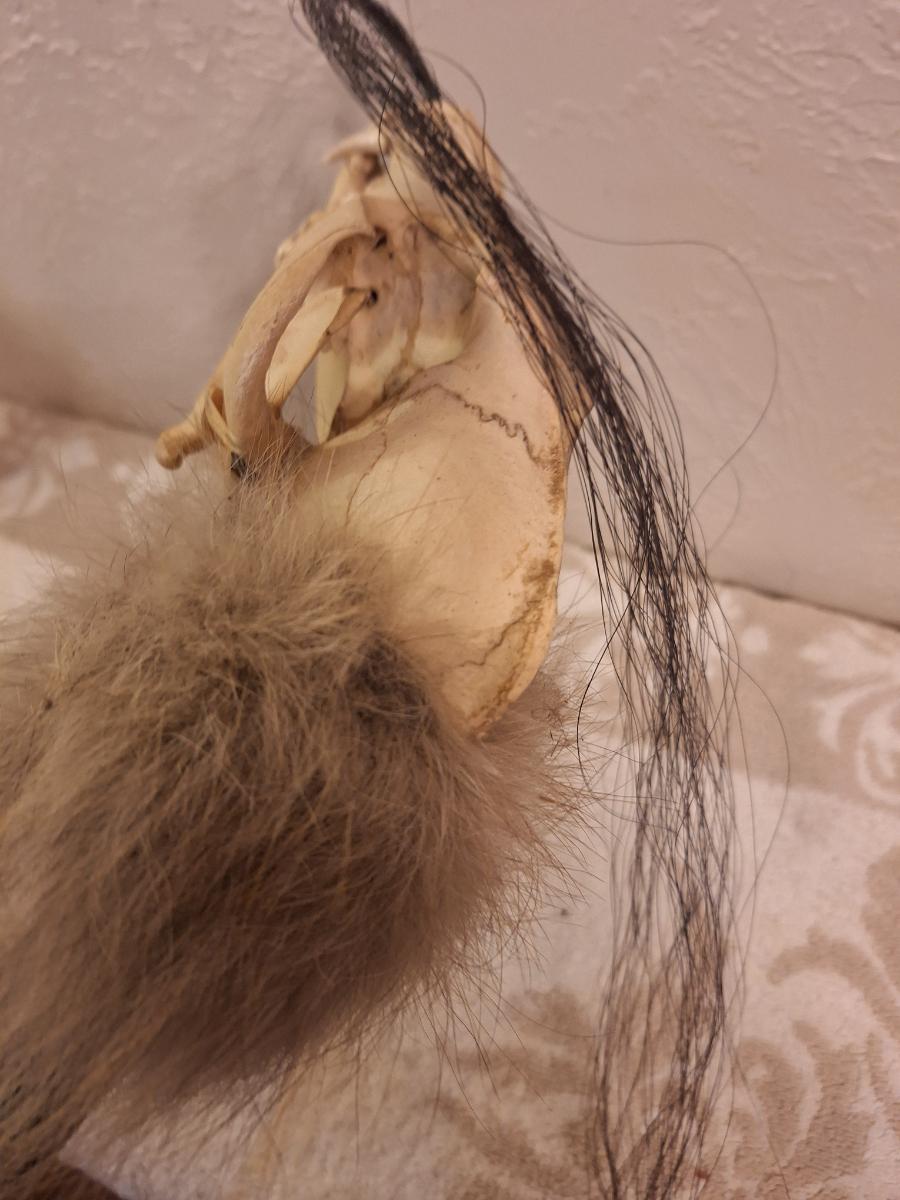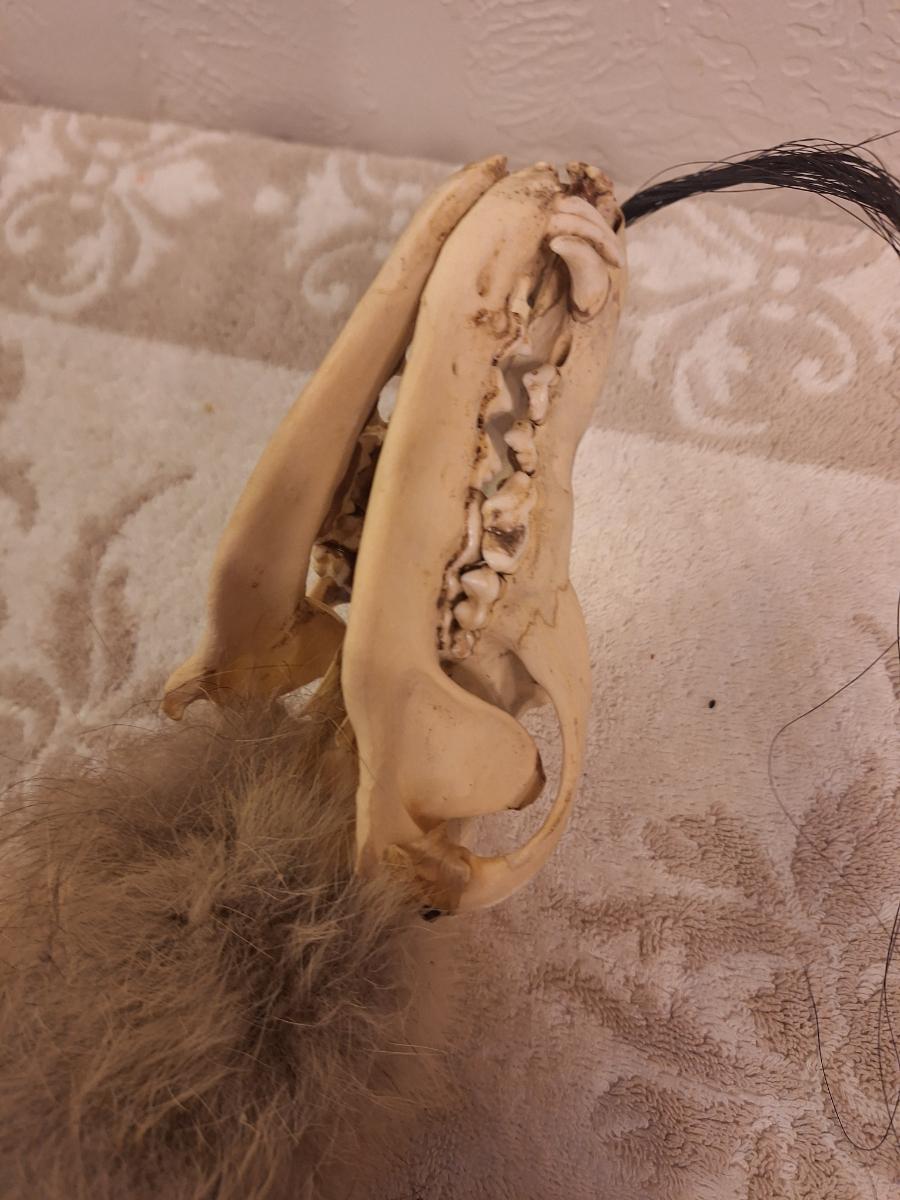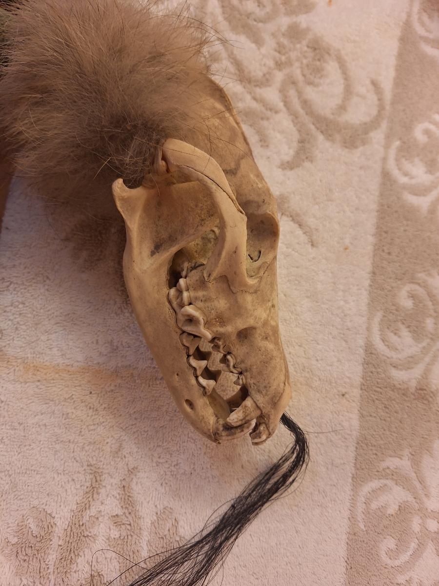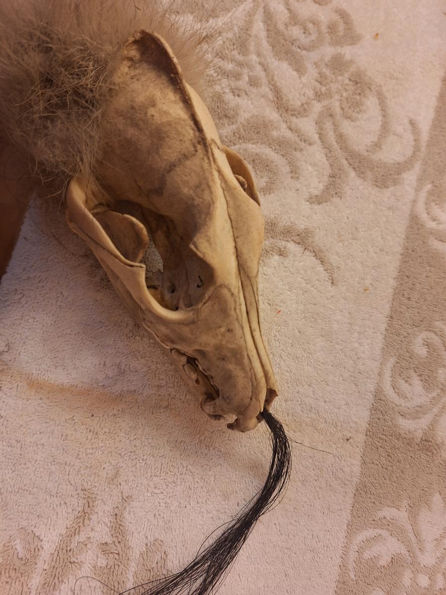 skull looks to be coyote or fox. Looks like this was $119 when it was bought - based on the age of the newspaper it was packed in we think it was bought in 2012.