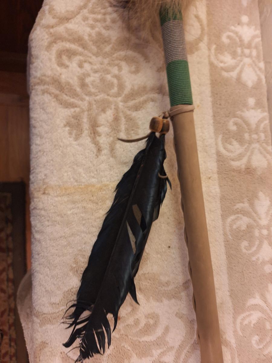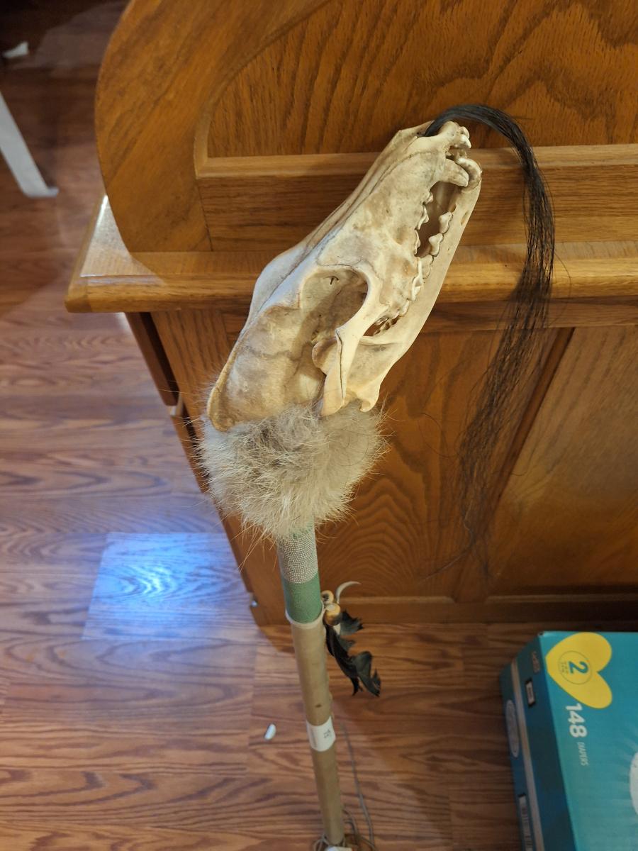 Native skull dance rattle with coyote skull
