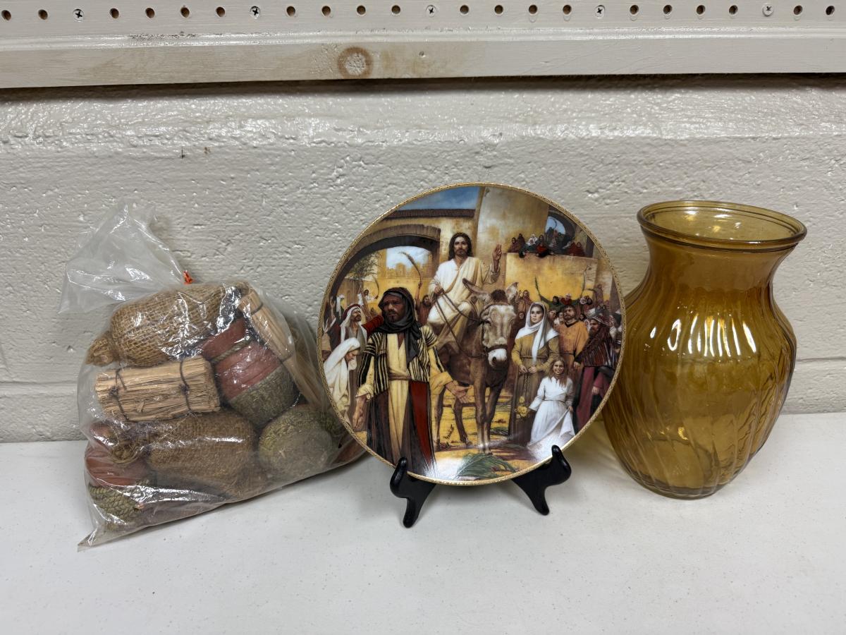 The entry to Jerusalem, nativity decor, vase (missing some paint)