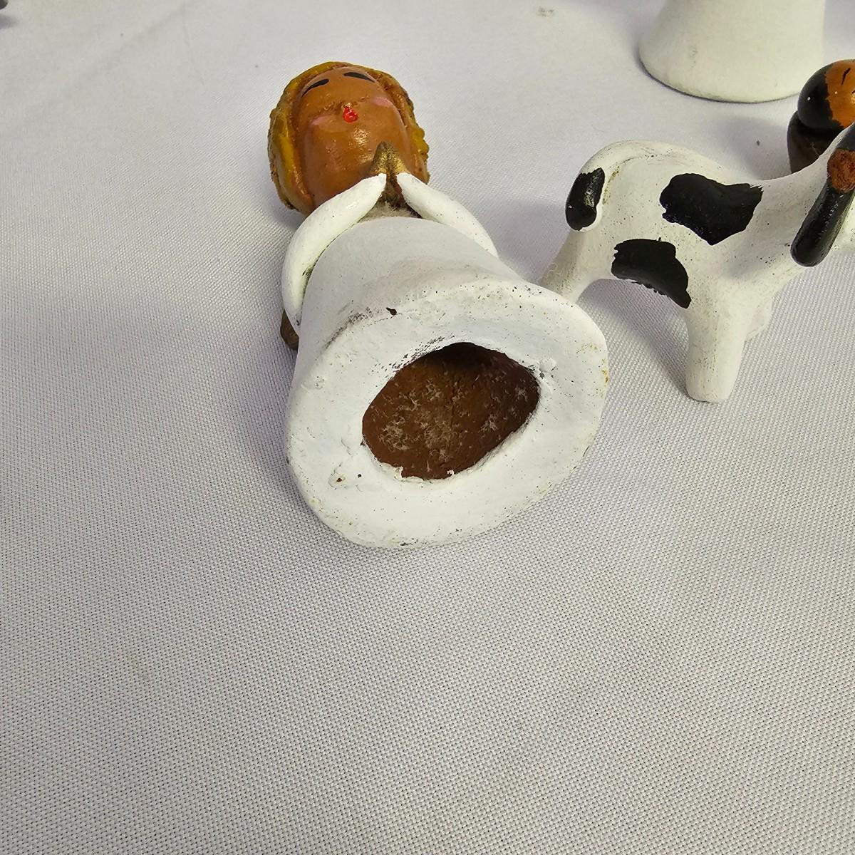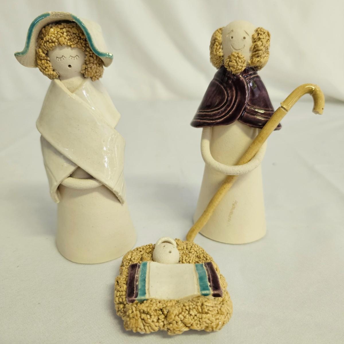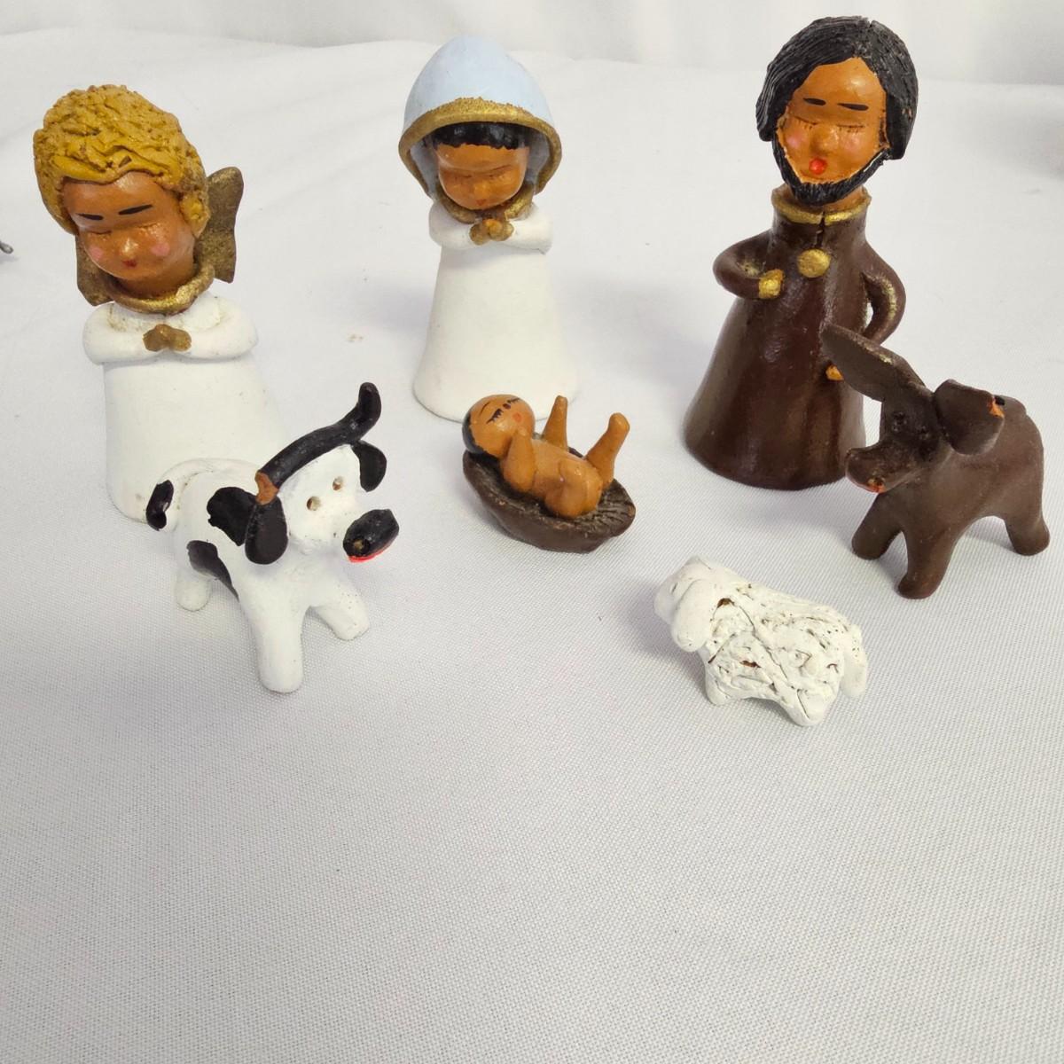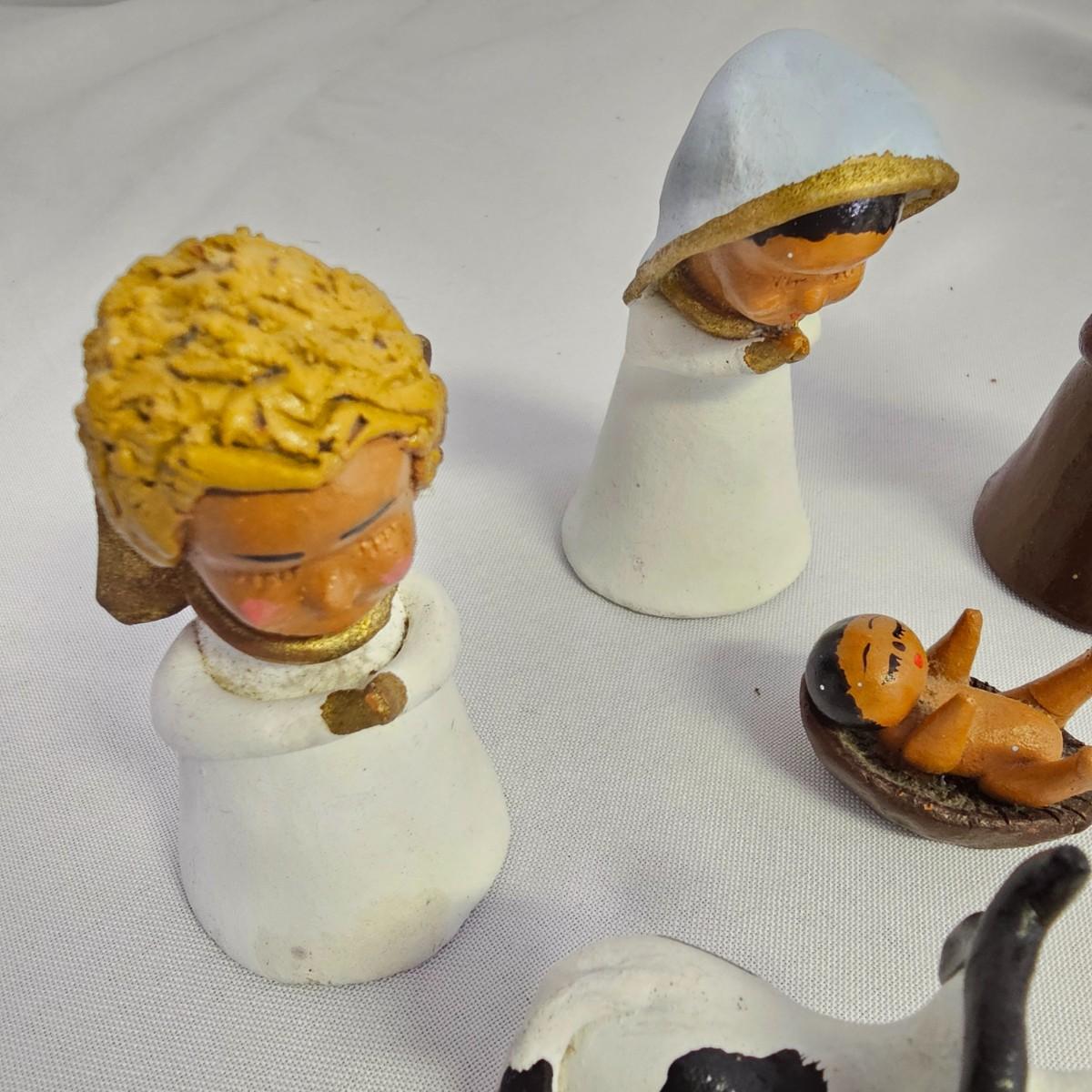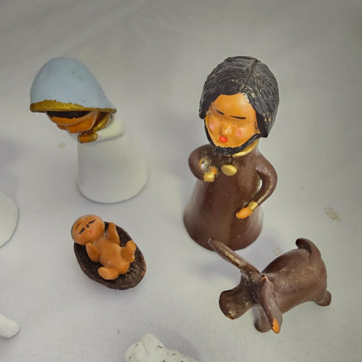 A varied collection of different representations of the Nativity. Fifteen unique sets, many from different countries. Iceland, Venezuela, Sweden and more are shown here. Ceramic, glass, wood, pewter and fabric materials. One Russian style nesting dolls with figures on them. Many items handcrafted. For reference, blue set is 10" x 3" x 5"H, tallest set with snow globe is 8". One ceramic piece has a slight crack in it. See photos for details. Shipping available.