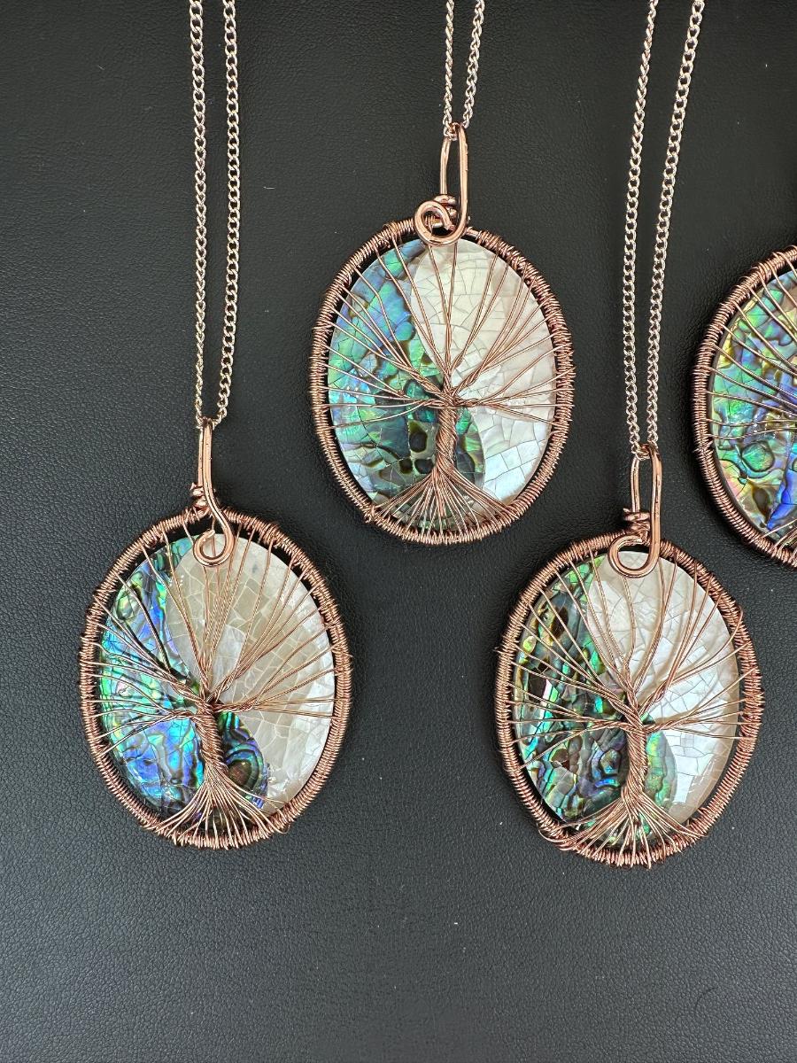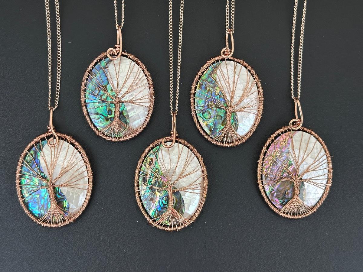 1. Natural Abalone Shell Tree Of Life Necklace Lot