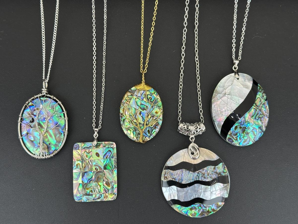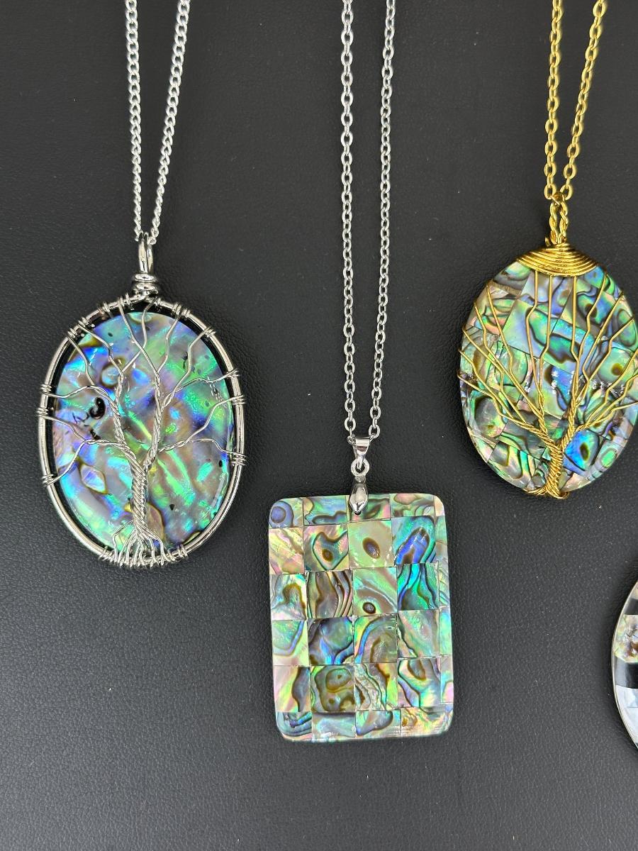 1. Natural Abalone Shell Tree Of Life Necklace Lot