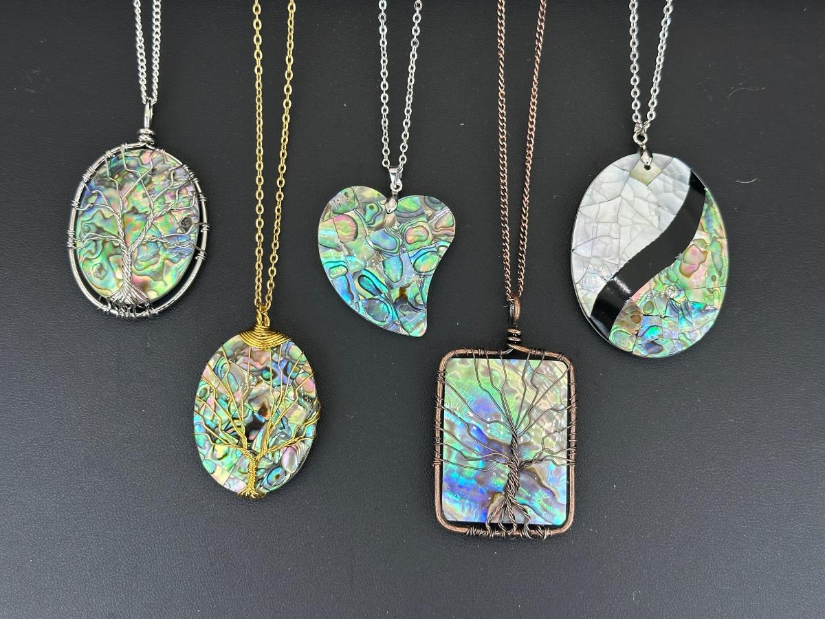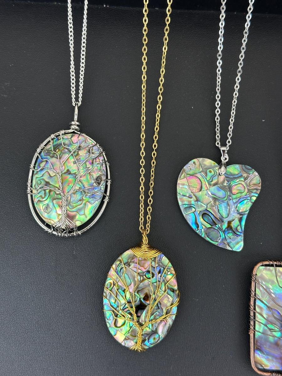 1. Natural Abalone Shell Tree Of Life Necklace Lot