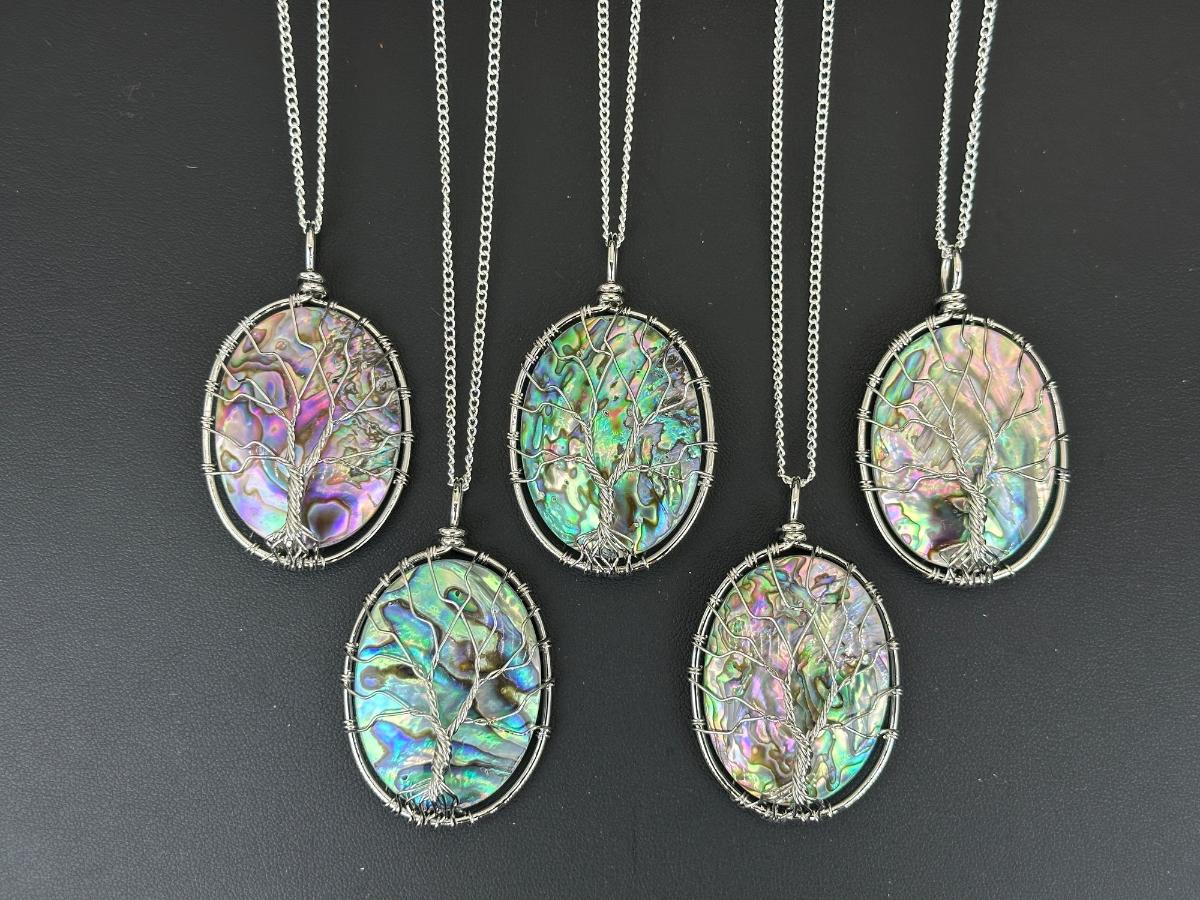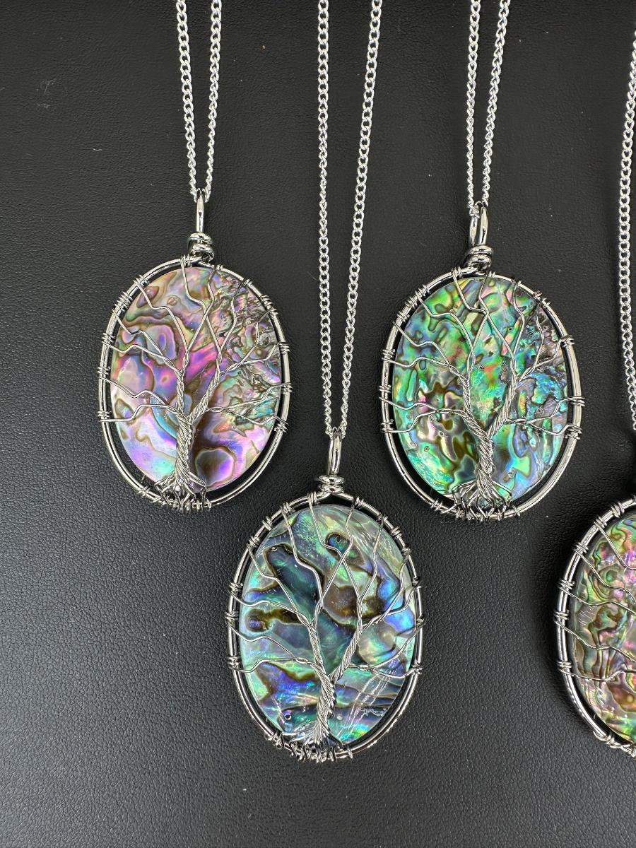 1. Natural Abalone Shell Tree Of Life Necklace Lot