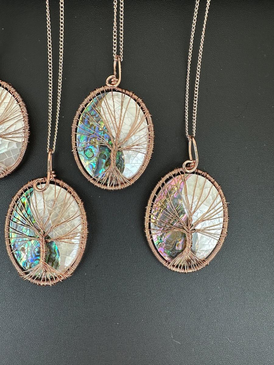 1. Natural Abalone Shell Tree Of Life Necklace Lot