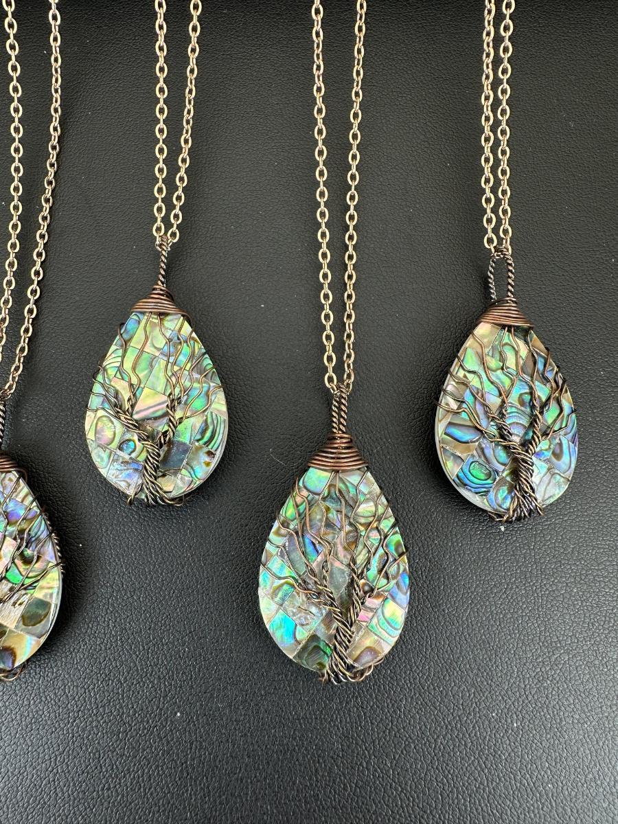 1. Natural Abalone Shell Tree Of Life Necklace Lot