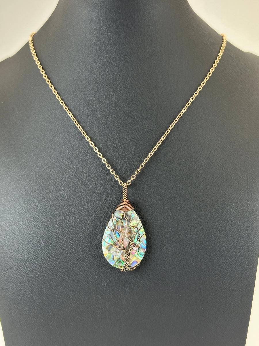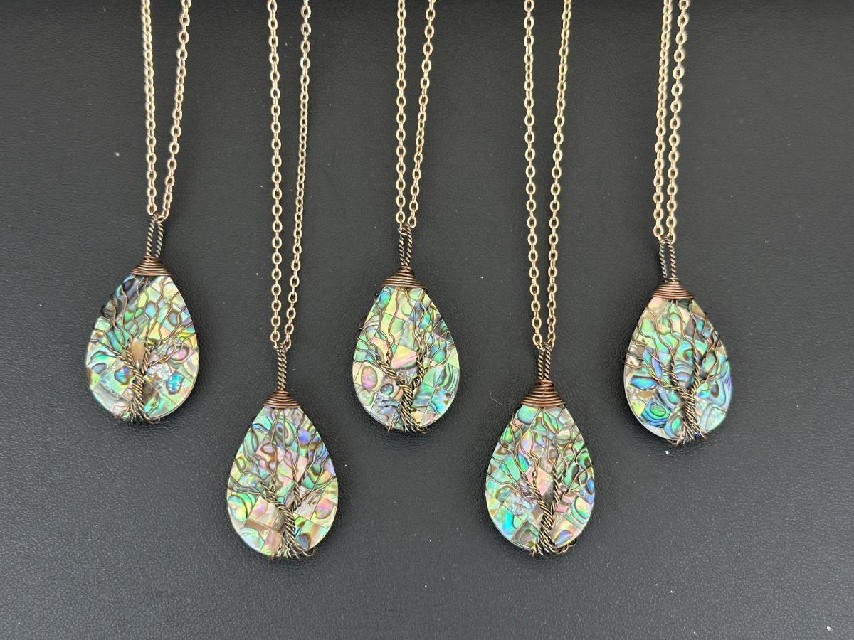 1. Natural Abalone Shell Tree Of Life Necklace Lot