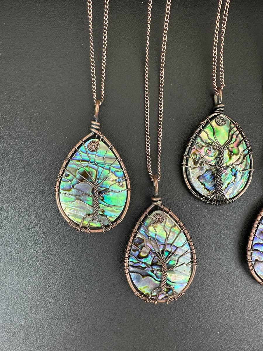 1. Natural Abalone Shell Tree Of Life Necklace Lot