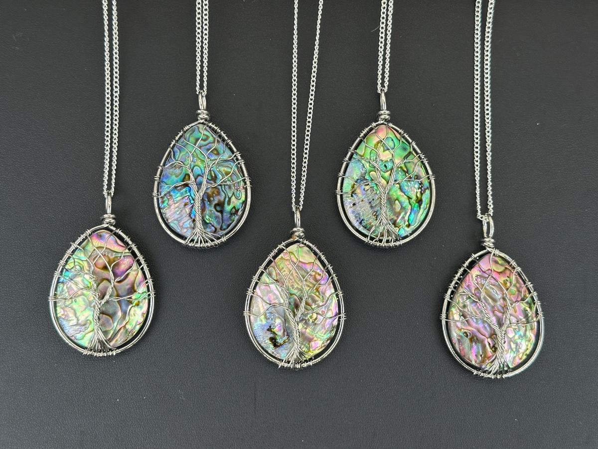 1. Natural Abalone Shell Tree Of Life Necklace Lot