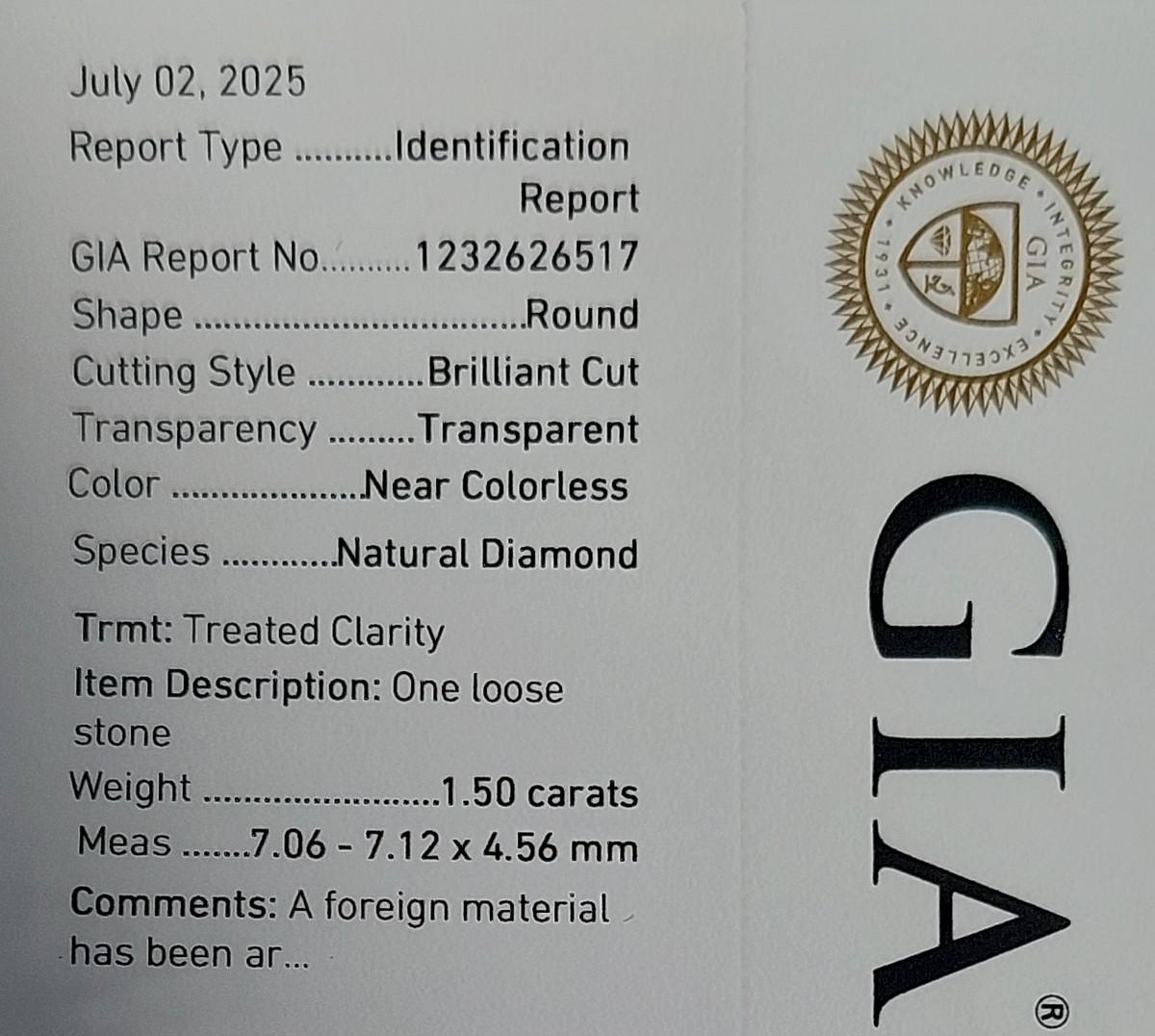 GIA CERTIFIED NATURAL EARTH MINED DIAMOND