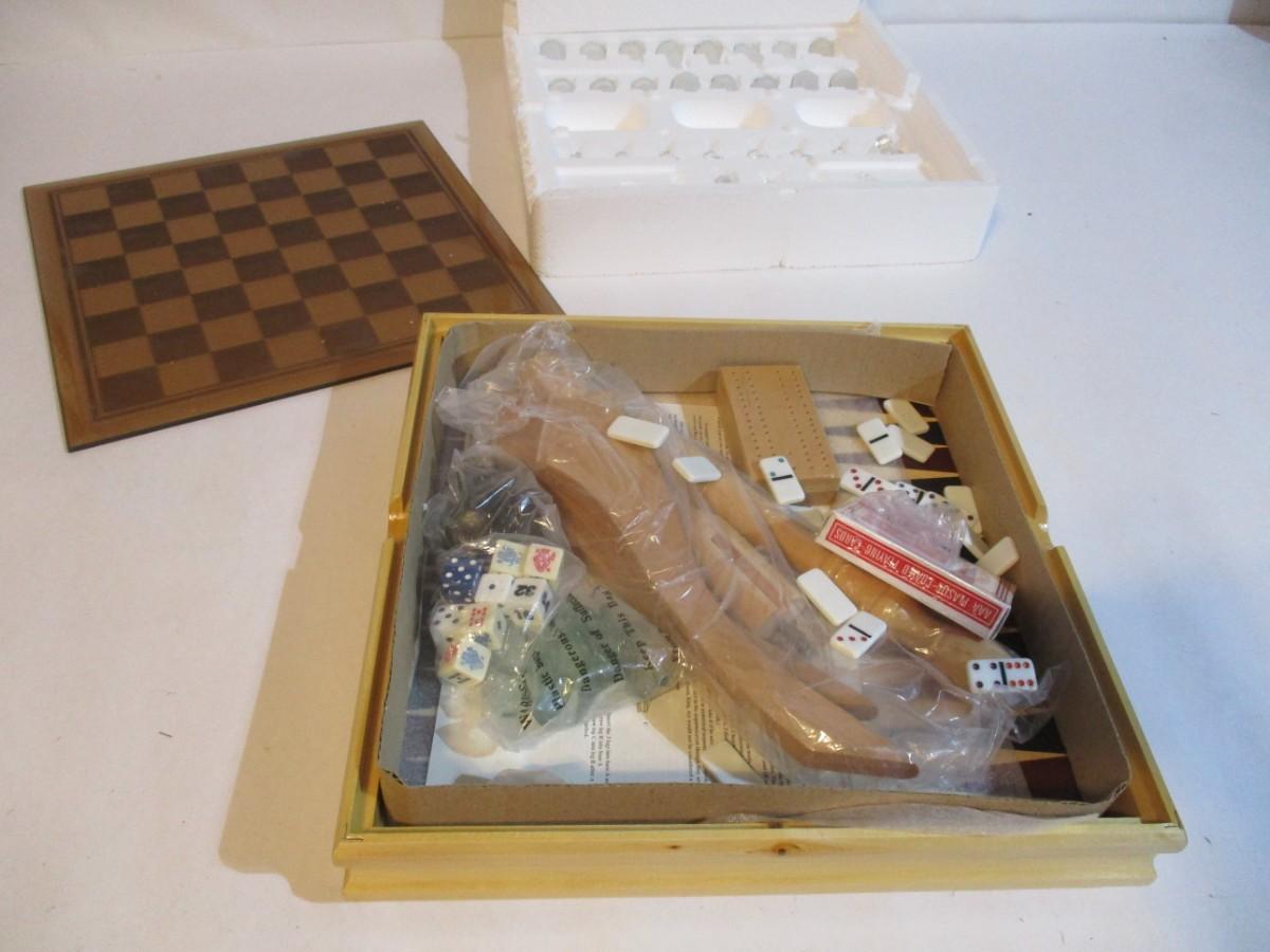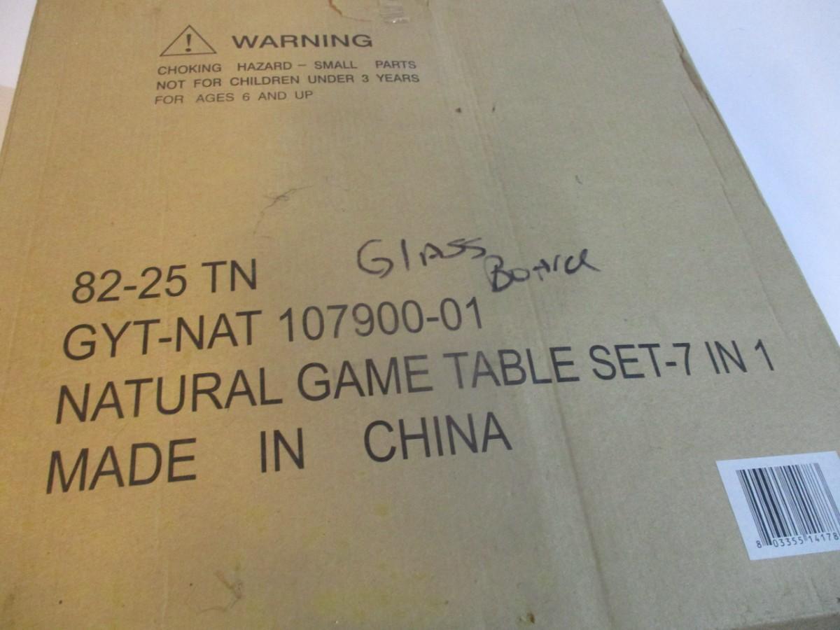 Natural Game Table Set 7 In 1 With Glass Chess Board