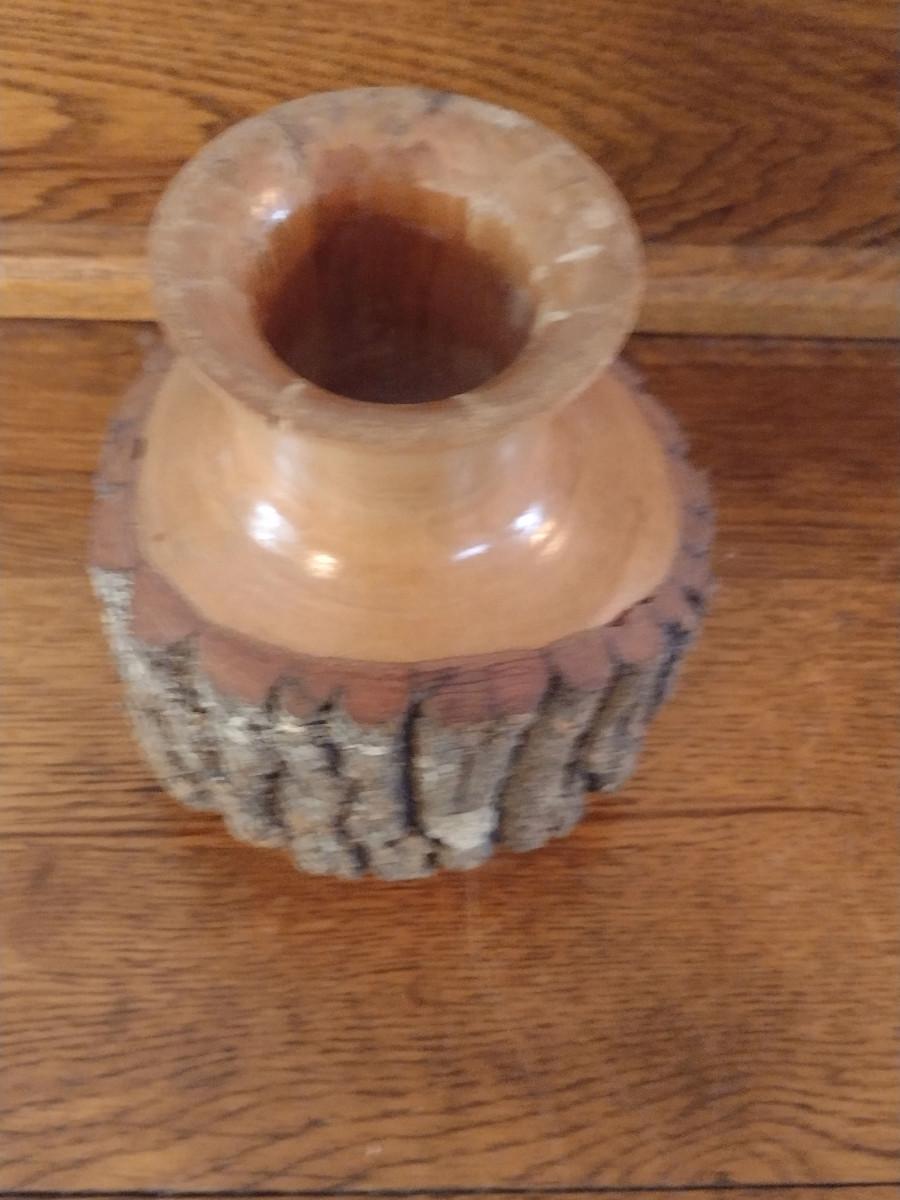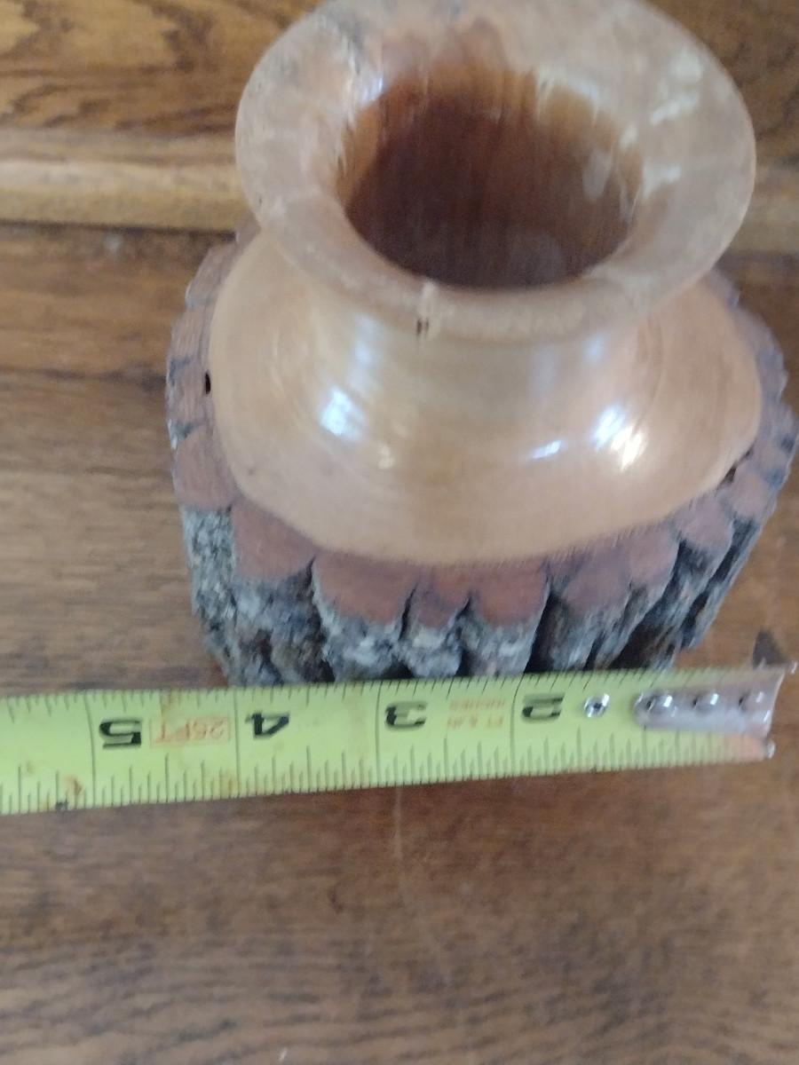 Natural Hand Turned Sourwood Vase- Approx 6" Tall. Please see all pictures, has small chip on top edge.