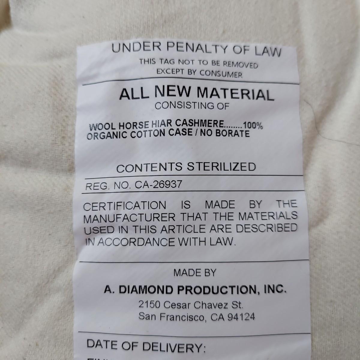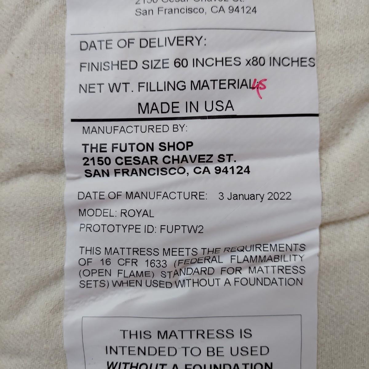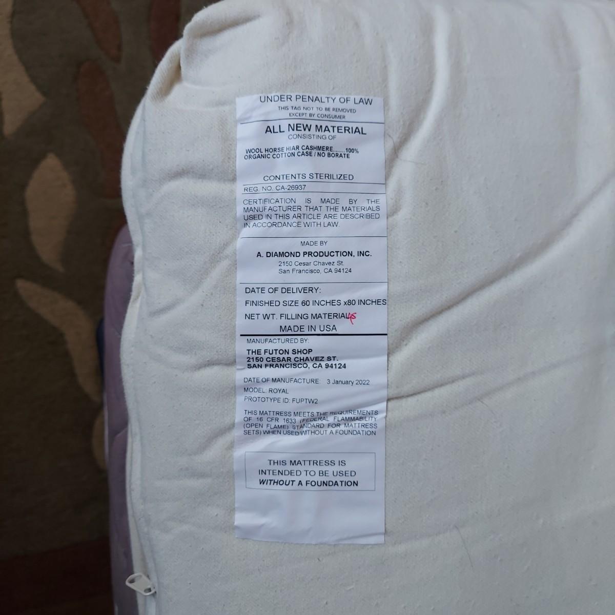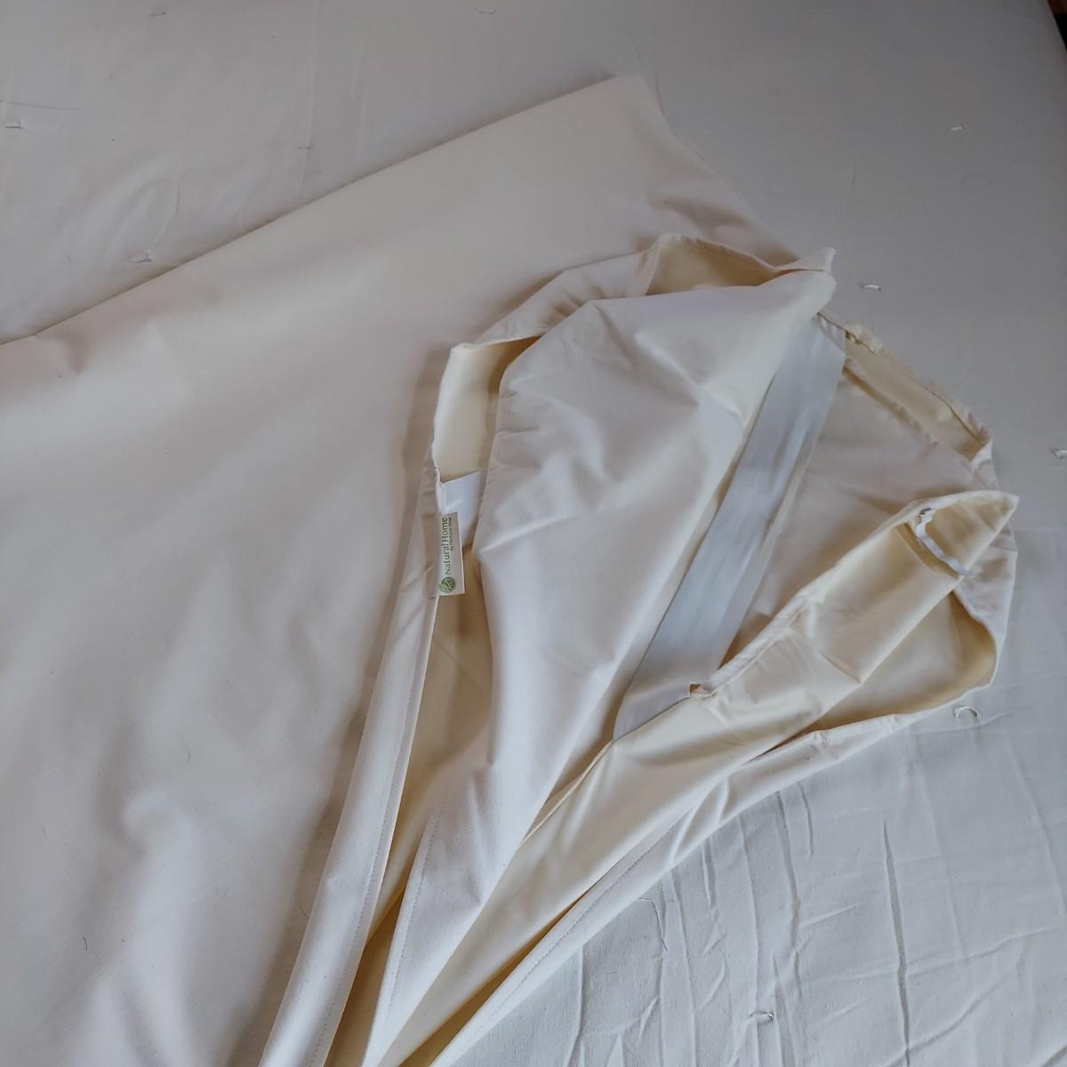 Natural mattress topper with slip on cover. Organic cotton outer with wool filling. Made by Natural Home by The Futon Shop. Measures approximately 62 x 84". About 4" thick. Please note item is from a pet owned home. Mattress is not included. Local Pickup Only.