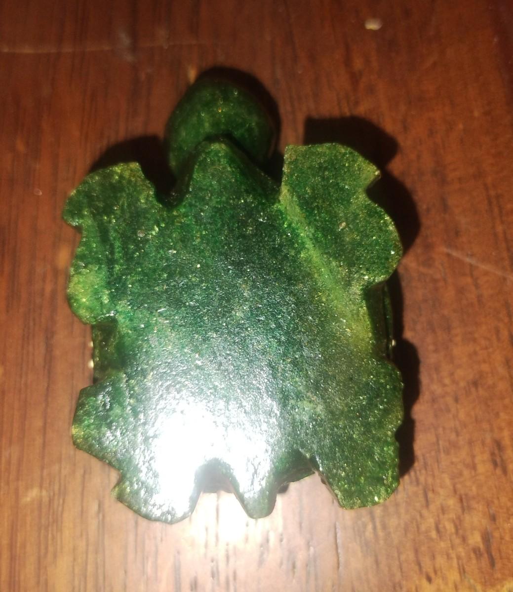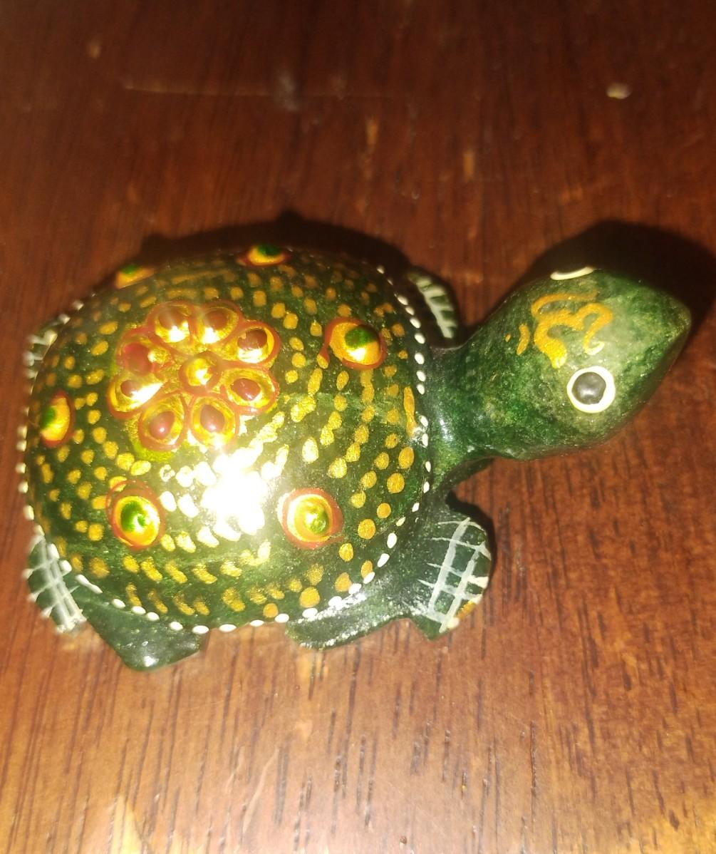 Gorgeous hand carved, hand painted natural Jade Turtle. Promotes prosperity. Perfect for your desk. What better than a paperweight that promotes prosperity.