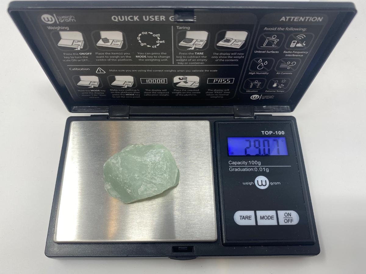 Natural Raw Aquamarine Stones. Light Aquamarine Stone Weight 29.07 grams. Dark Aquamarine Stones Weight 20.64 grams