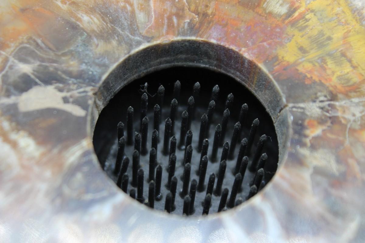 Natural Stone Ikebana Vase Geode Slice Floral Frog Handcrafted