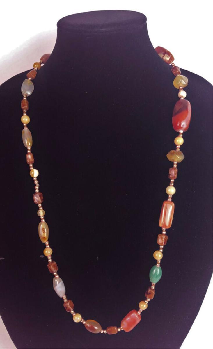 NATURAL STONE MIXED AGATE NECKLACE 15" artisan jewelry