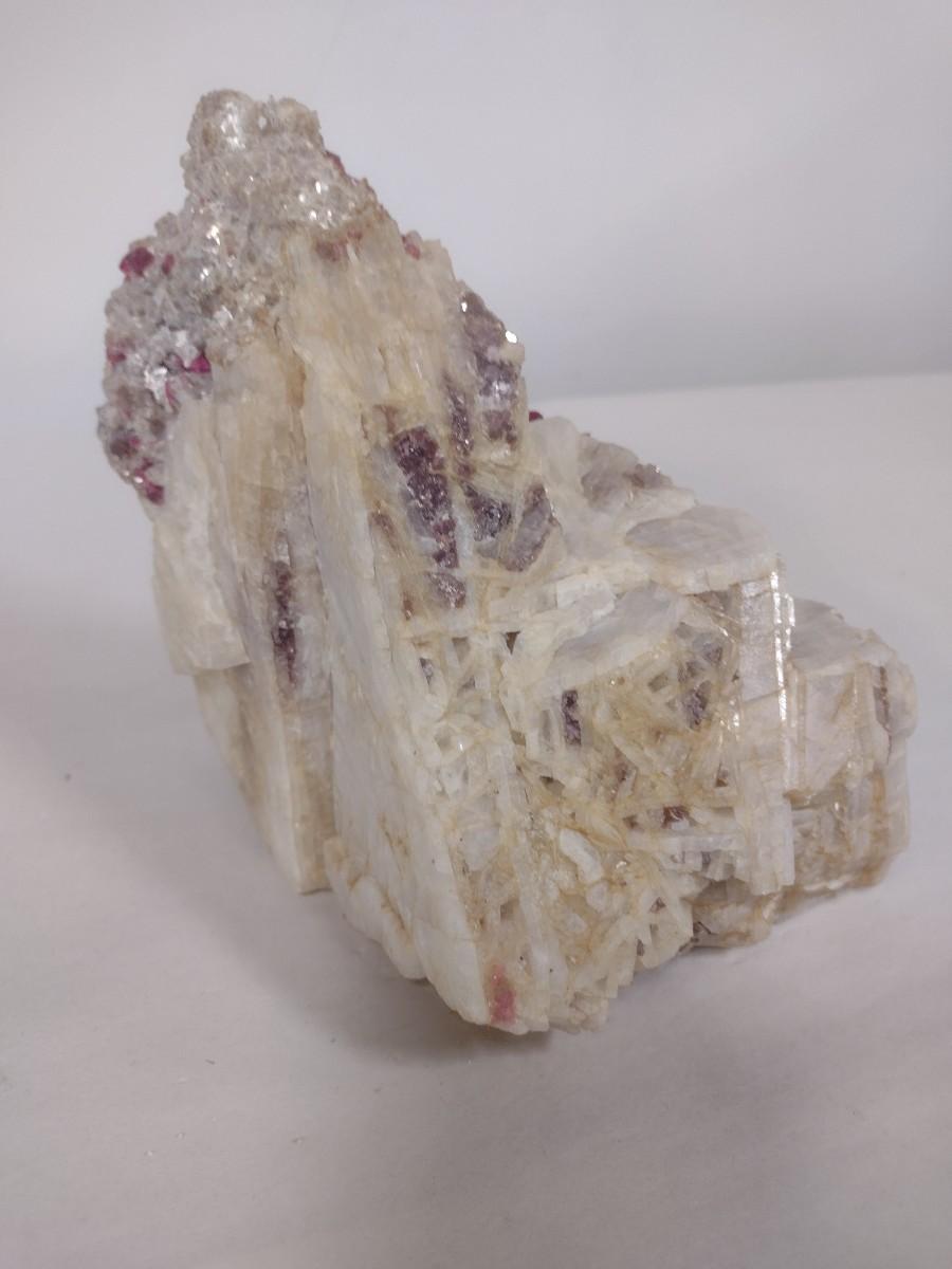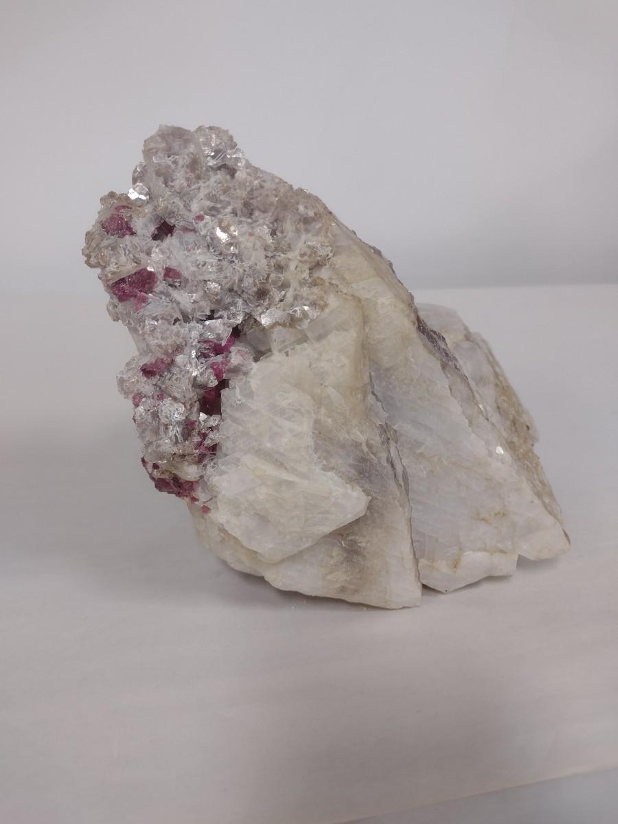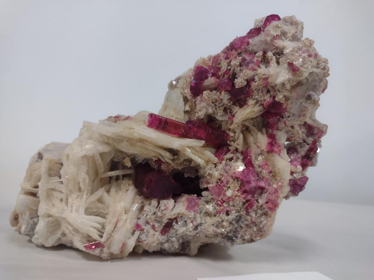 Natural Stone Specimen of Large Well Defined Rubellite Crystals in Cleavelandite, Lepidolite and Quartz Mix