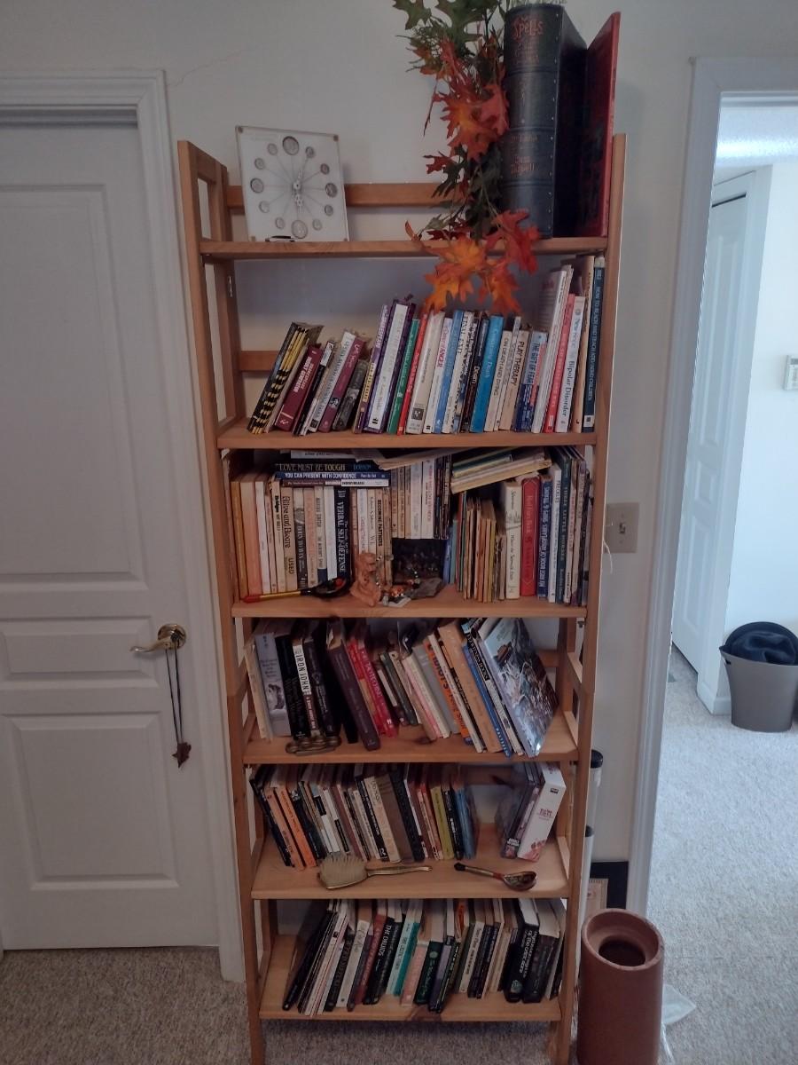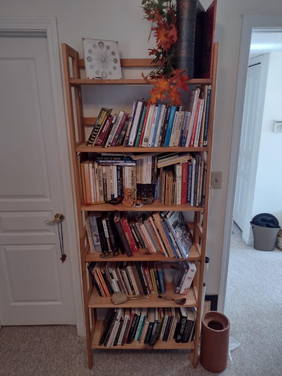 Natural Wood Finish Folding Multi-Shelf Book Stand (No Contents)
