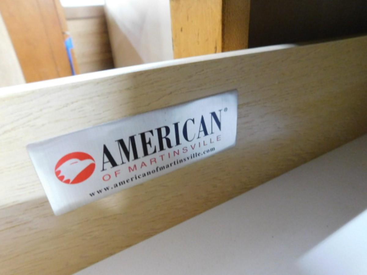 Natural Wood Finish Rustic Design Side Table by American of Martinsville Single Choice Bidder is buying one unit. Buying as is condition. May need touching up or minor repairs due to scratches, chips, delamination, or scuffed trim or edges. Expect some wear or scratches to the finish. Shipping option available via freight or local mover at Buyer's expense. Buyer must have all shipping scheduled within the stated dates and times of pickup. Recommended local mover is Beaty Bros. Moving 828-201-2982