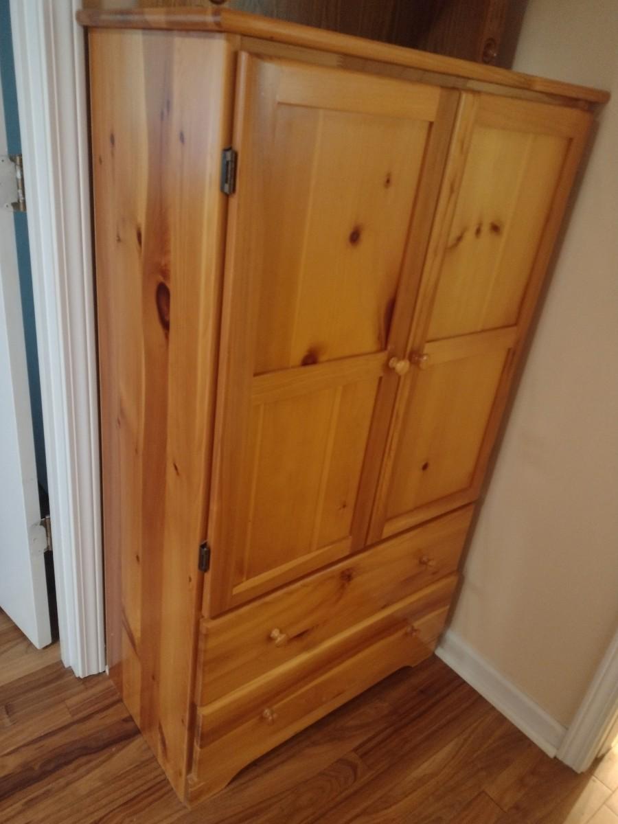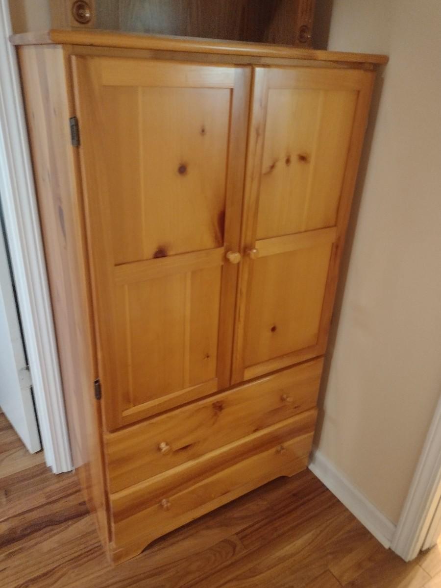 Natural Wood Pine Double Door Cabinet (No Contents)