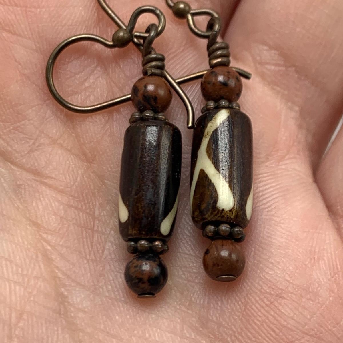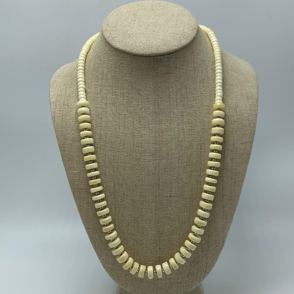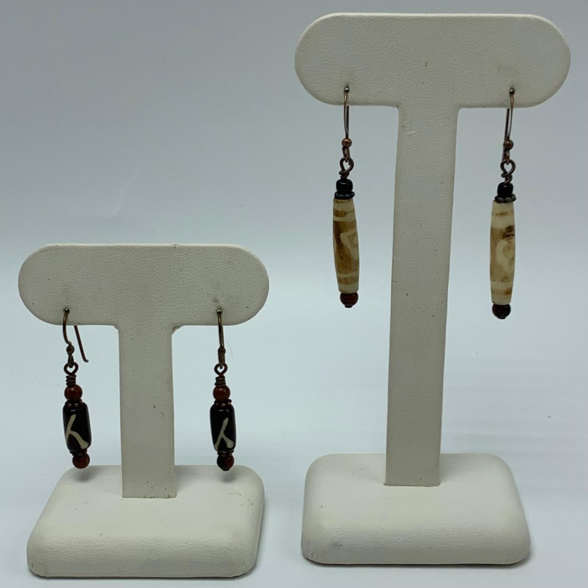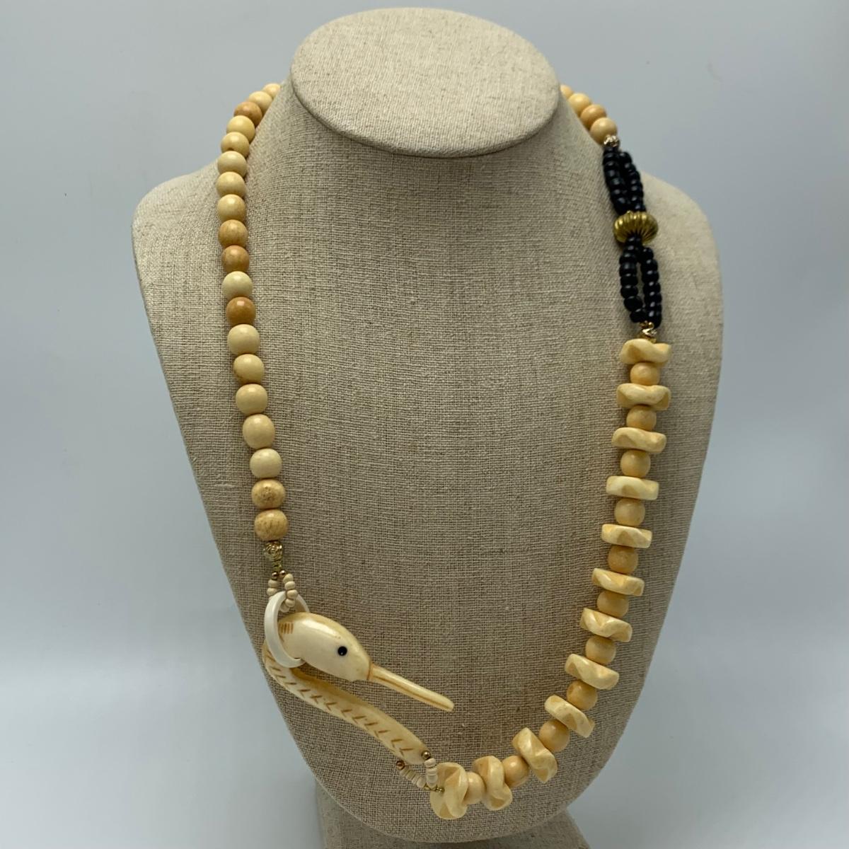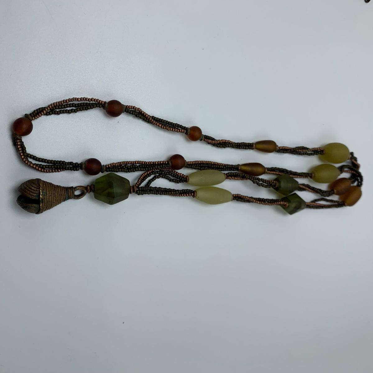 A collection of eight necklaces, one bracelet, two pairs of dangly earrings for pierced ears, and one loose shell pendant; most made with earthy nature-based materials like stones, wood, & shells. Most necklaces are on the longer side. The longest is the white necklace with seashell type beads which is approximately 40”. The shortest is the necklace made of ribbon at 15”. All sales are final. No returns or refunds. Please bid accordingly.