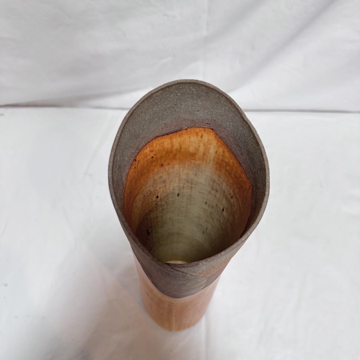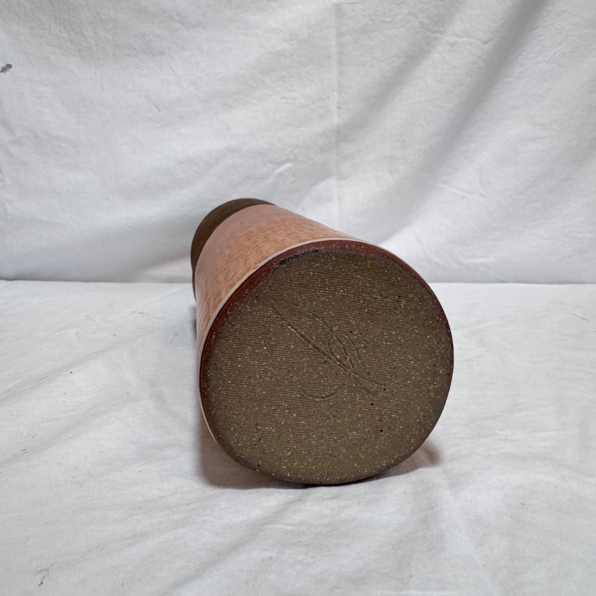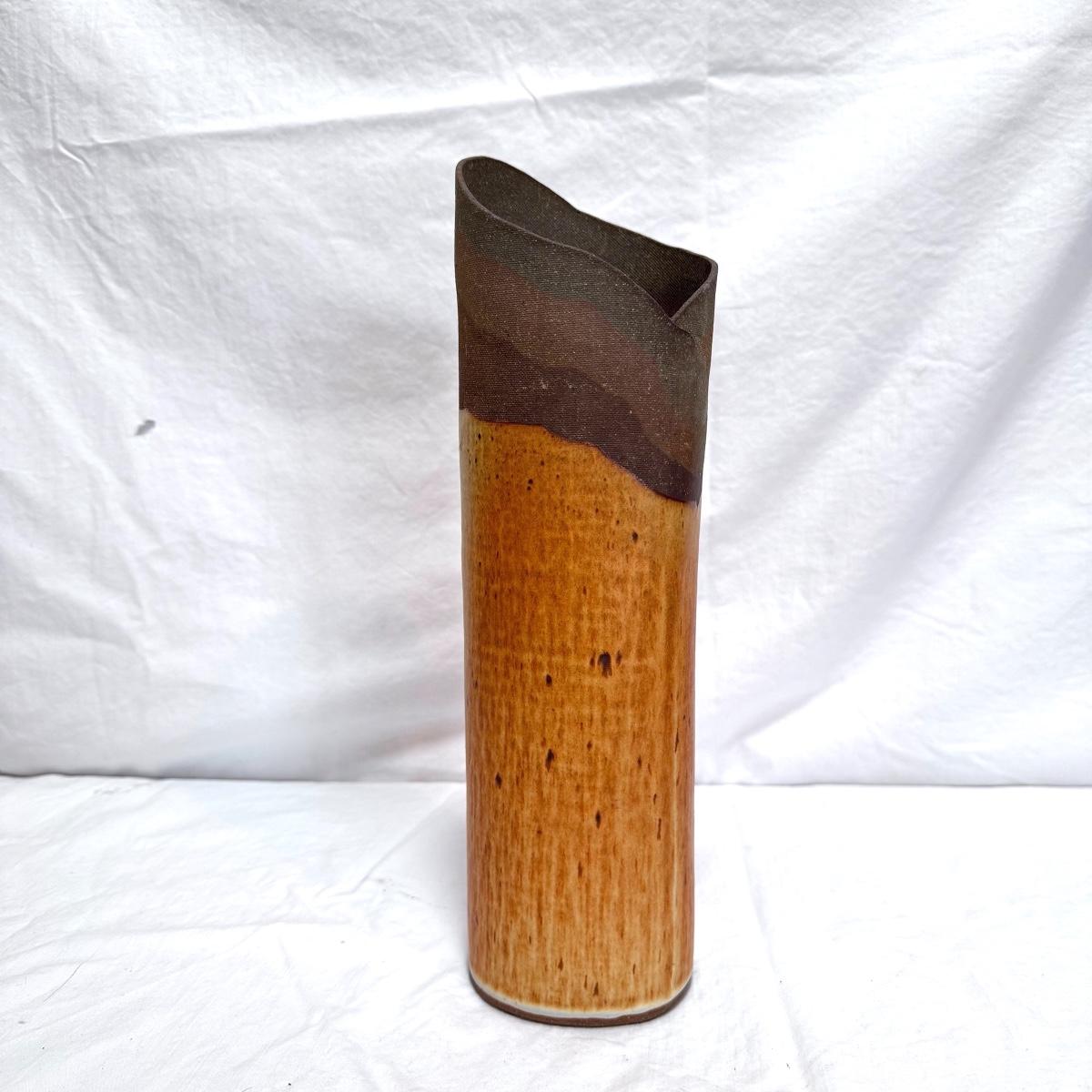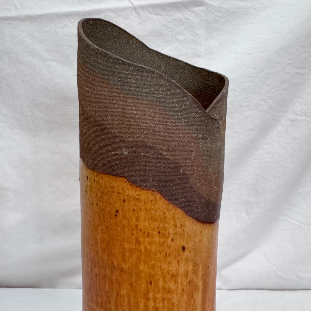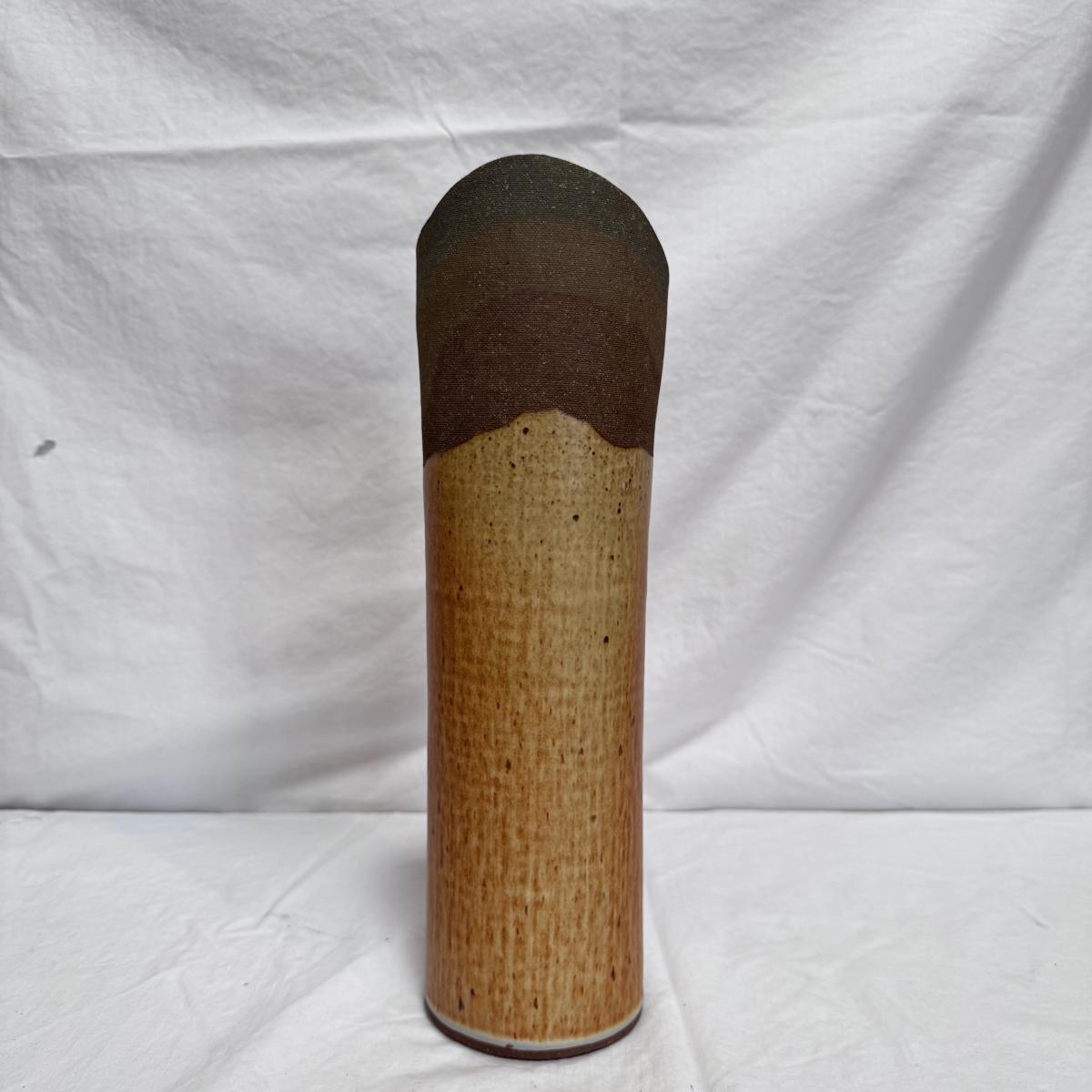 This lot includes one nature-inspired ceramic vase with a beautiful wooden-appearing glaze. The vase measures 4.5” x 13”H. It appears to be signed on the bottom. Shipping available.