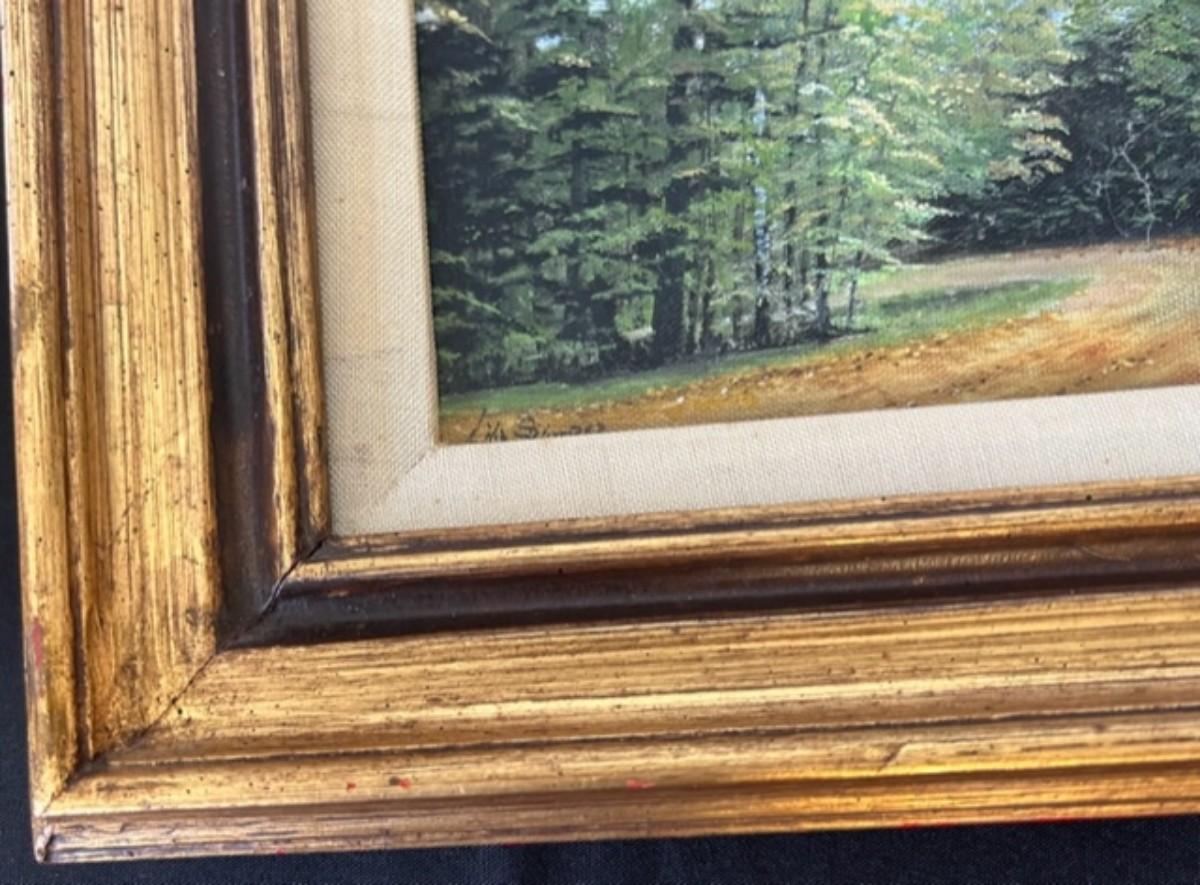 Original oil on canvas. Signed by artist. Beautifully matted and framed. Very good condition, a few scuffs to rim of frame but certainly usable as is.
