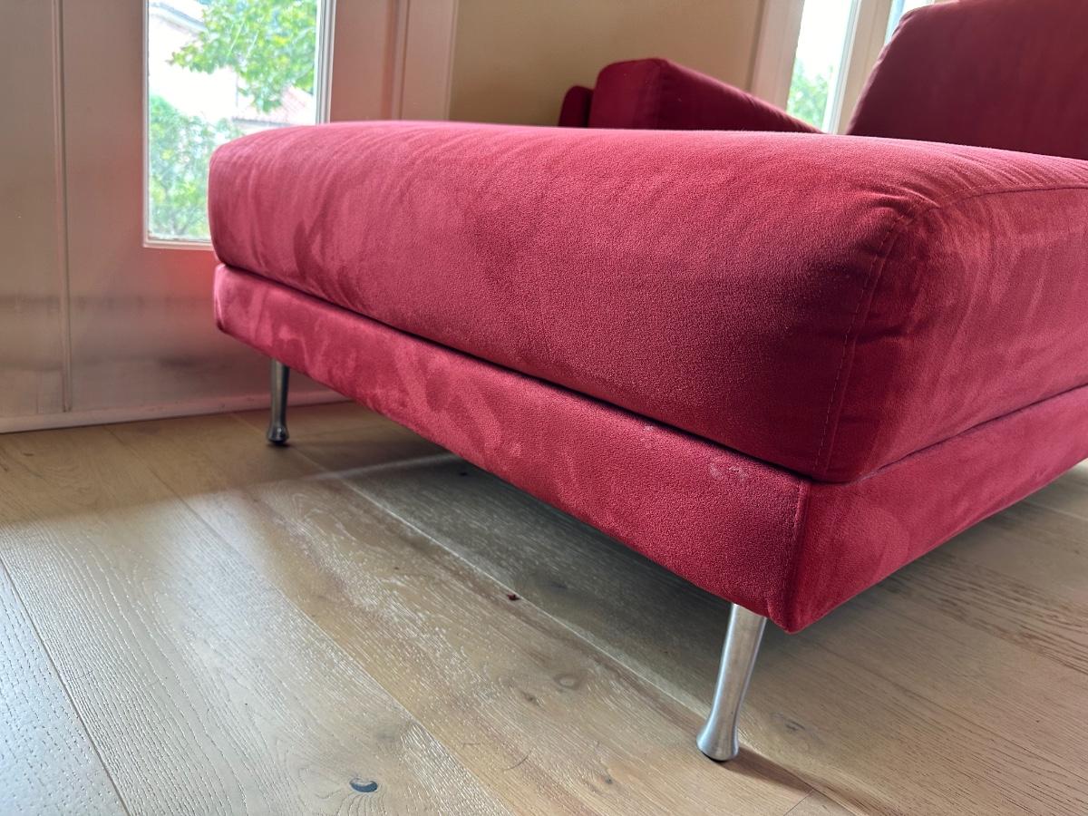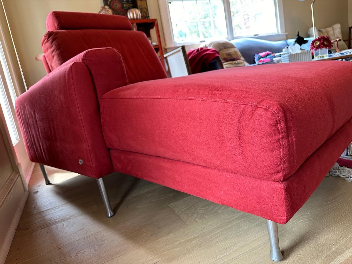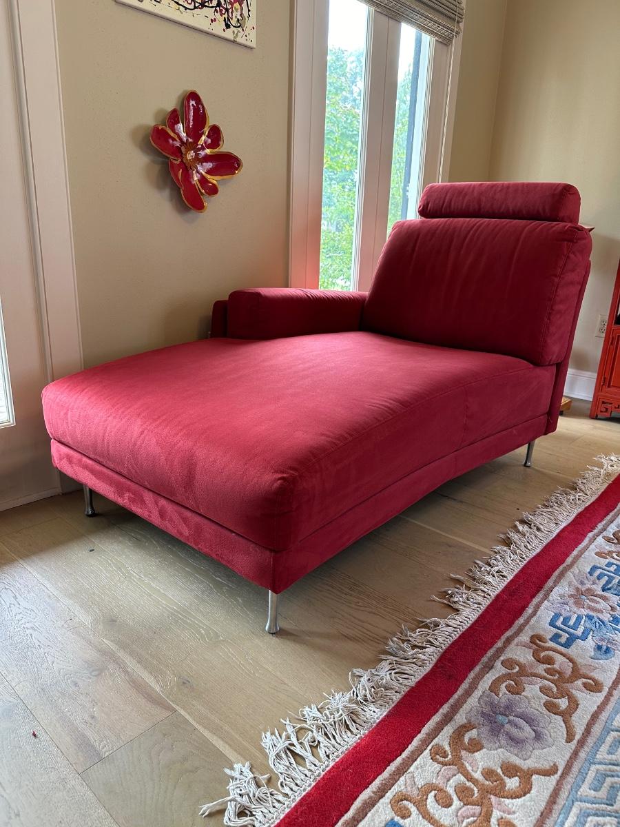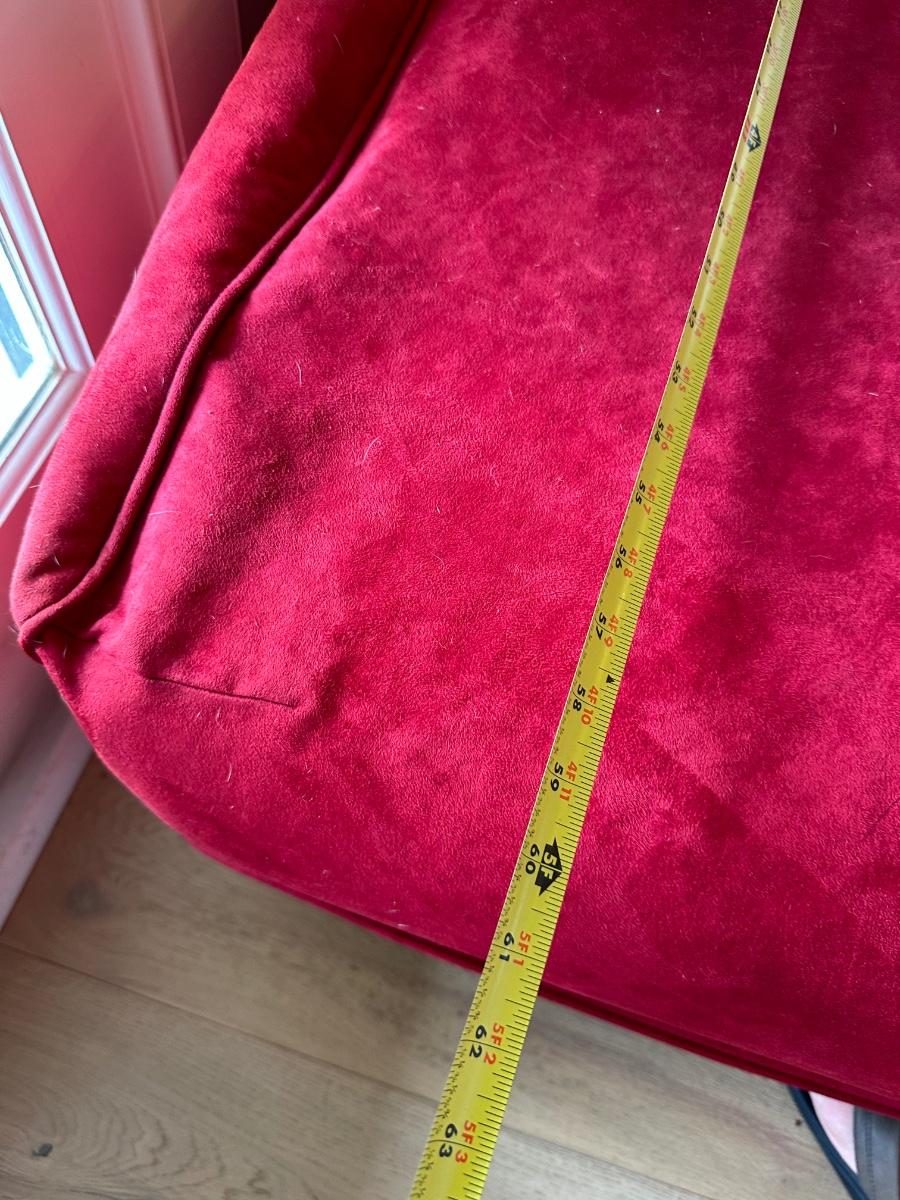 Chair had a slipcover over it, removed for pictures. Fabric is like new