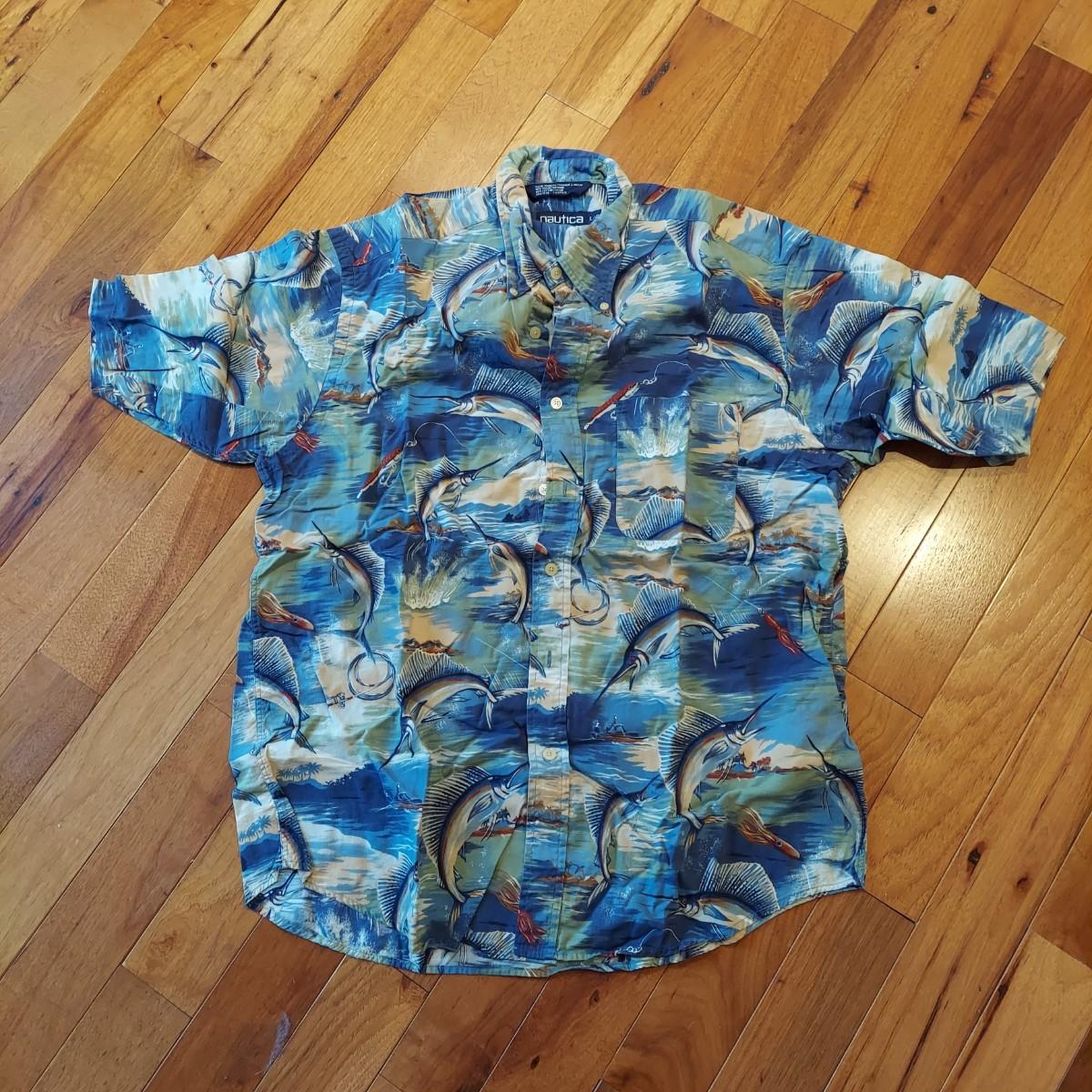 Lot includes two sunhats and six pairs of men's swimming trunks in size Large. Plus a pair of swim trunks with a matching short sleeve button down shirt. Most pieces are Nautica. Some Tommy Hilfiger and Polo Sport too. Please see photos for details. Shipping available.
