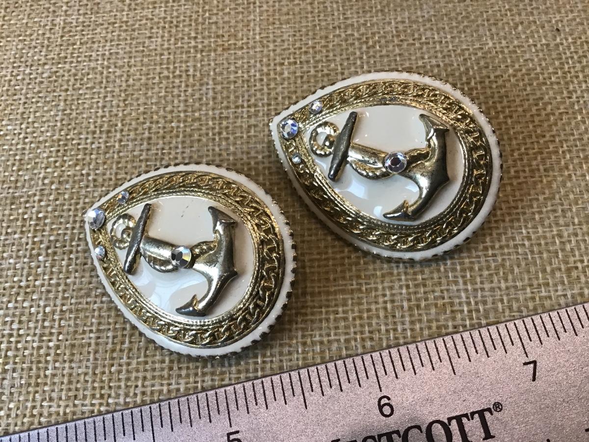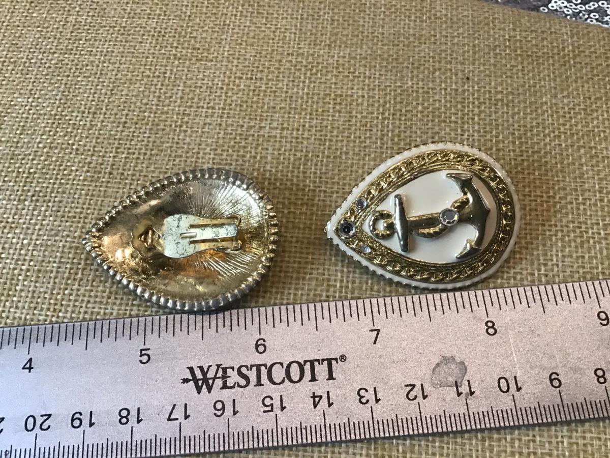 Nautical anchor crystal clip Vintage Teardrop earrings 2 x 1 1/4” Large
