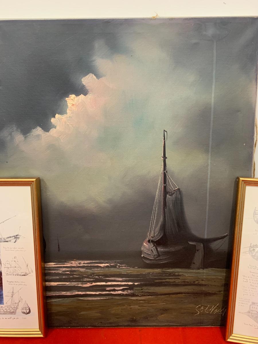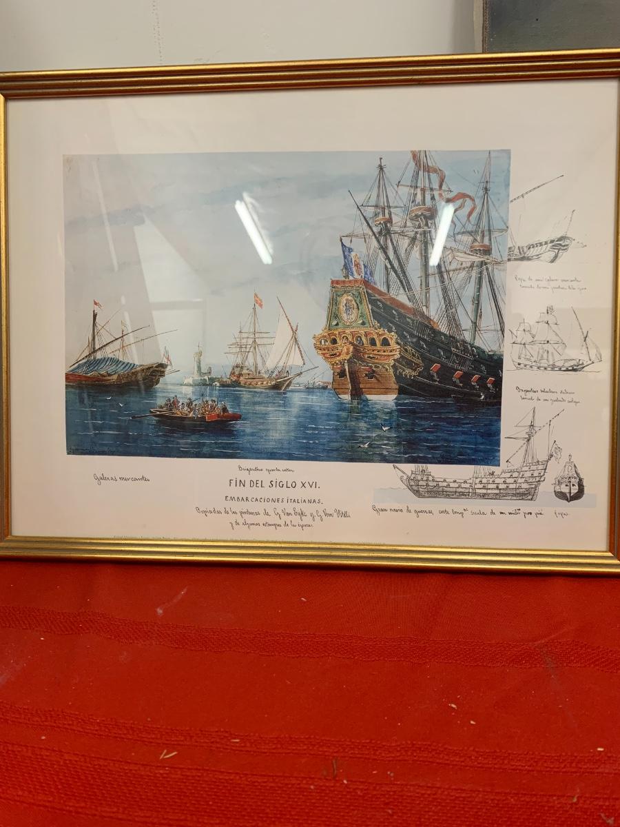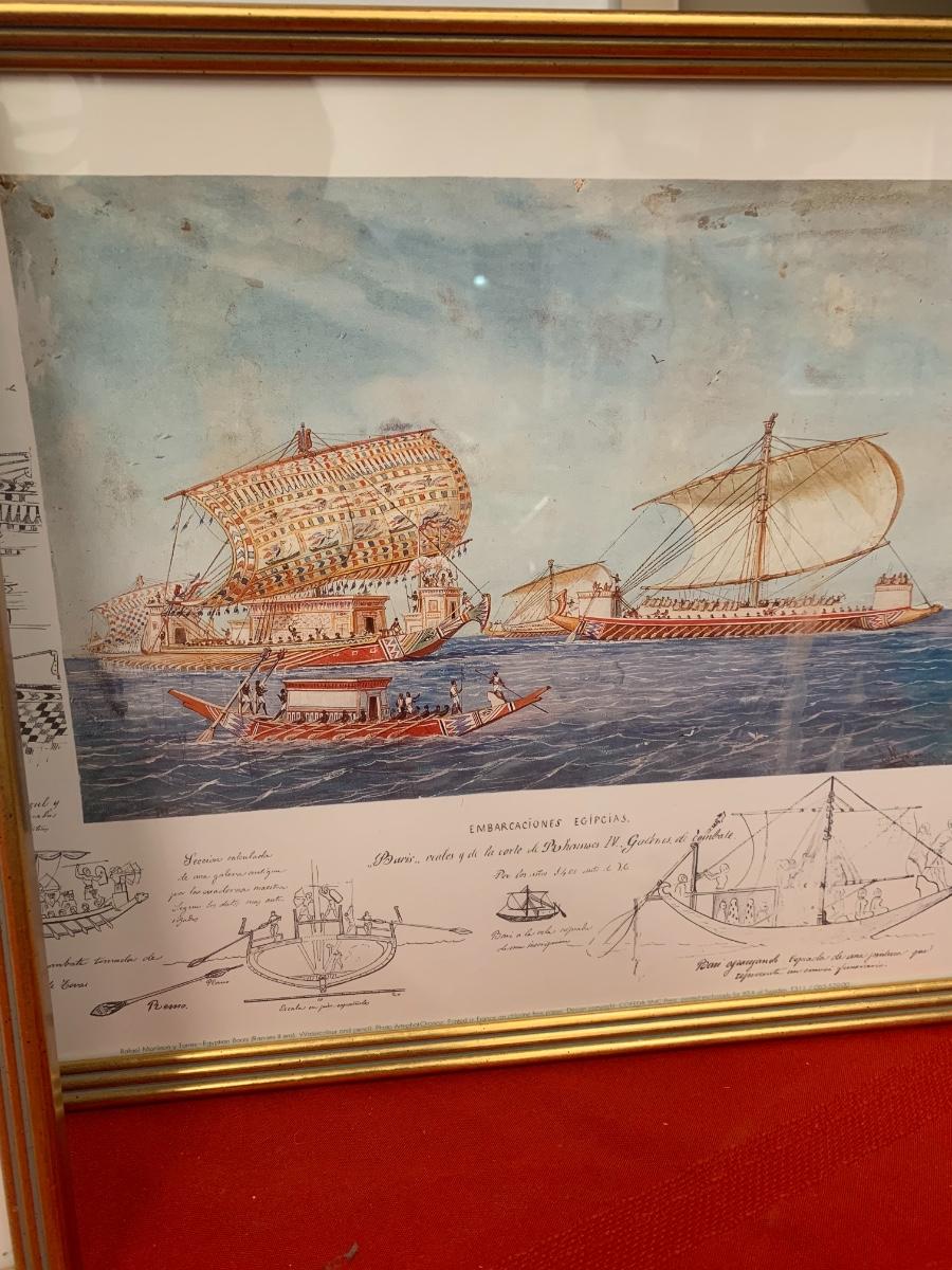 Nautical art pieces - Marina De La Edad Media, Embarcaciones Egiecias, Renacimiento, Fin Del Siglo XVI. Largest piece of art has minor damage on the upper left side (23.5” x 19.5”) - The 4 others measure in at 17” x 13”.