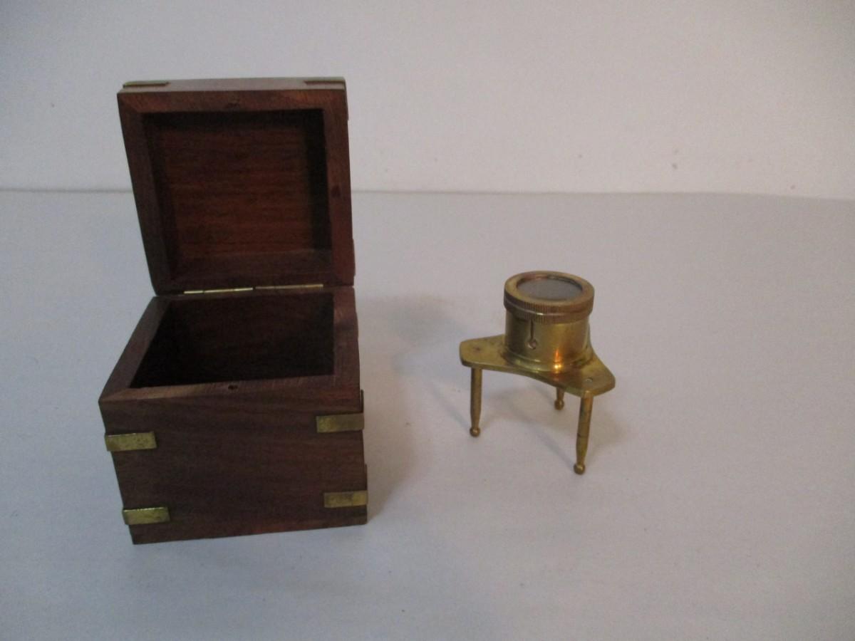Nautical Brass Chart Map Glass Magnifying Magnifier With Box