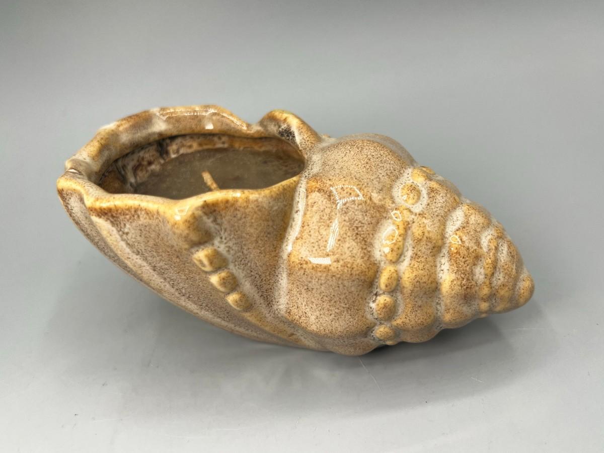 Nautical Brown Sand Seashell Candle Holder, there are no significant cracks or chips to candle holder and is in good useable condition. The candle has been lightly used, check pictures for more details and for sizing.