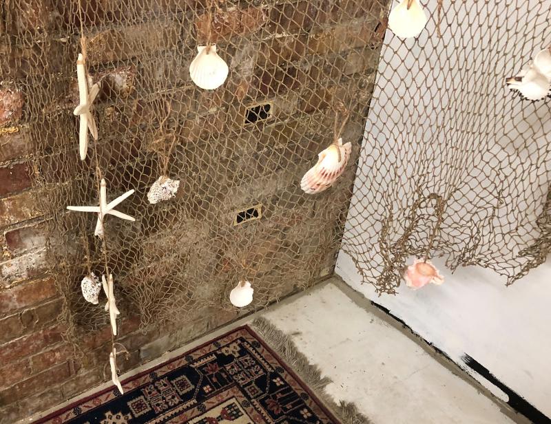 Here is a fishing net bestrewn with natural sea shells...as shown..