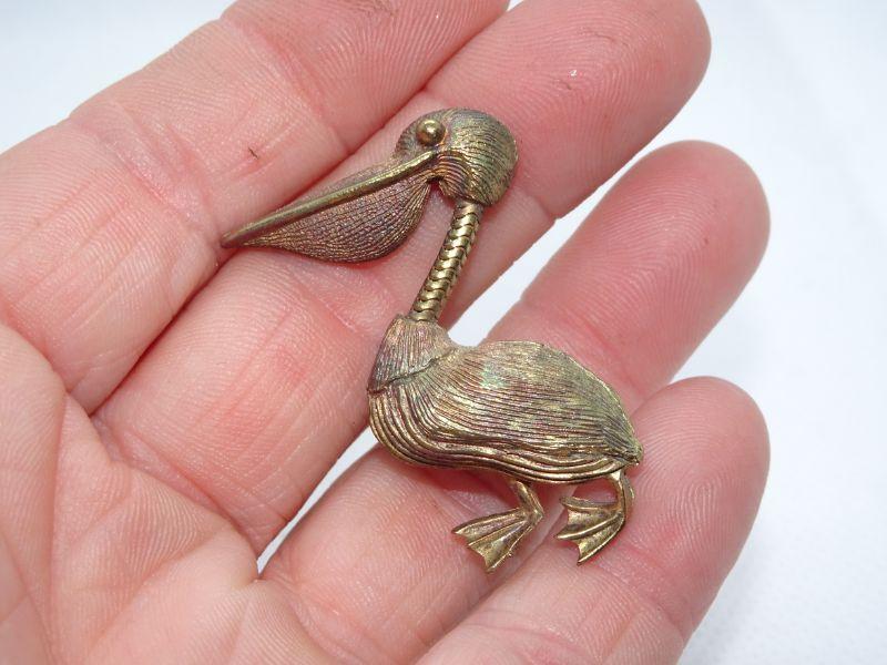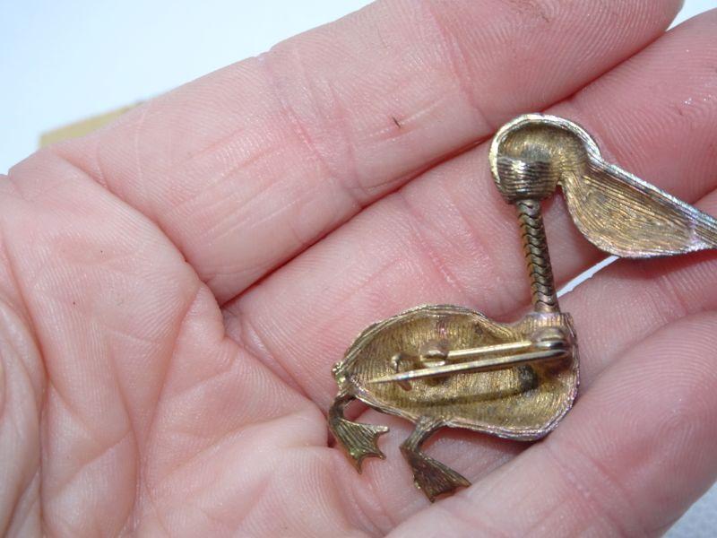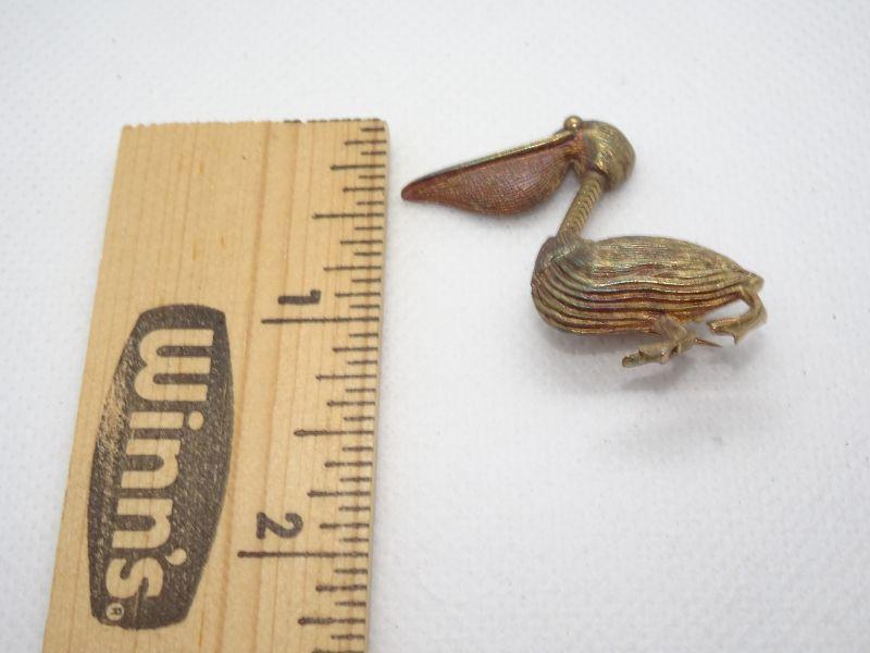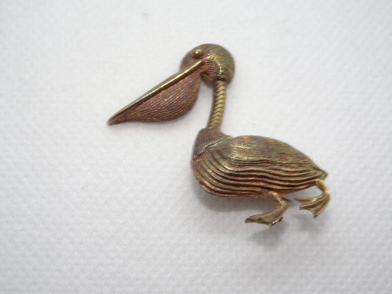 Nautical Gold Tone Pelican Bird Pin, Neck Moves